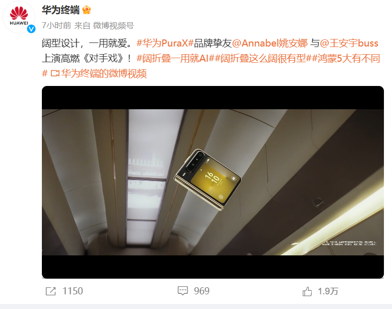 3月27日,华为影业联合品牌挚友姚安娜和王安宇推出了两条视频,展示了华为Pura X的卓越性能。这款手机不仅具备独特的16:10阔型屏,还首发全面搭载鸿蒙操作系统5,凭借软硬件协同优化,真正做到了“为内容而生”。华为Pura X的16:10屏幕比例是手机领域的一次革命性突破。华为Pura X的内屏以16:10黄金比例呈现,这一创新设计不仅带来了更加宽广的显示视野,更在多个使用场景中展现出显著优势。