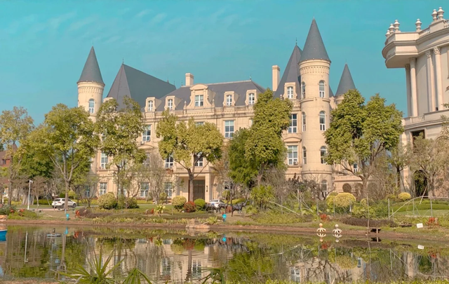 那些配套更可惜。高尔夫球场的草倒是疯长,绿油油一片,可半个打球的人都没有。足球场边线都被落叶盖住了,所谓的“皇家园林”里,假山和流水还在哗哗响,但步道上只有保洁阿姨一个人扫叶子。