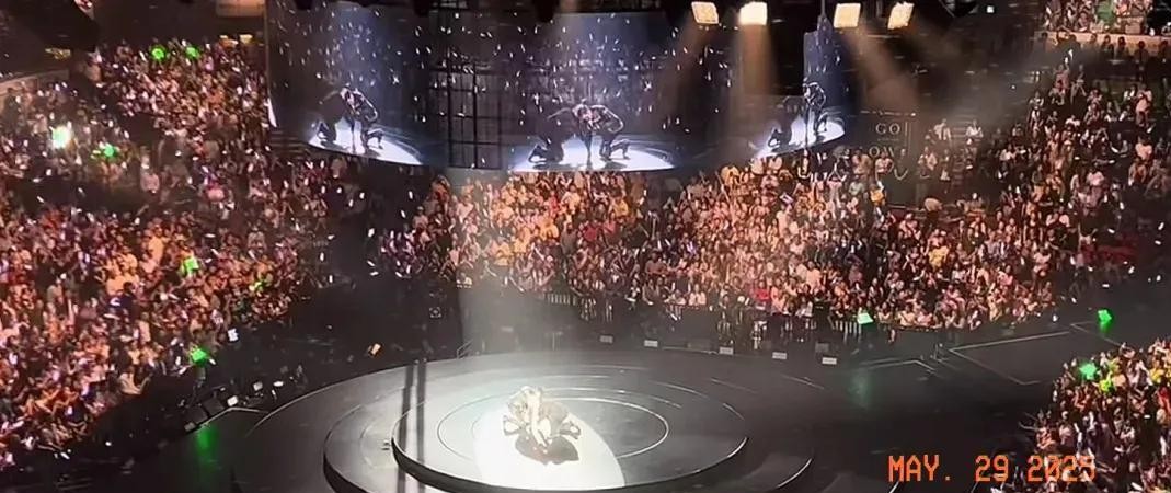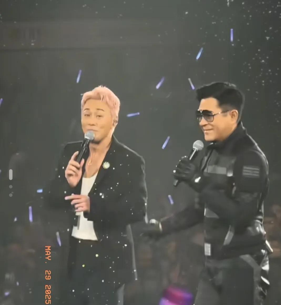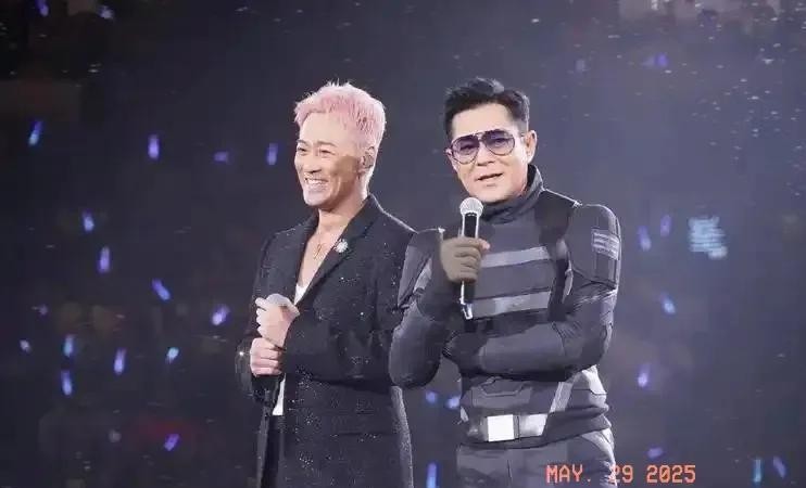 红磡体育馆的穹顶差点被掀翻。 2025年5月28日晚上,当古天乐身披银色机甲战袍从天而降,八千人的尖叫声形成实质化的音浪。 他单膝跪在舞台中央,对着聚光灯下的林峯喊出那句刻进DNA的台词:"参见大王! "林峯伸手扶起他时,两人眼中闪过的水光被台下手机镜头精准捕获。距离2001年《寻秦记》首播,整整过去了8760天。