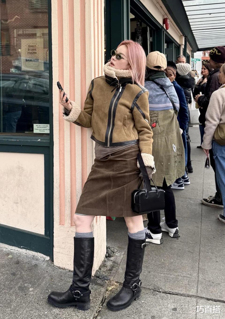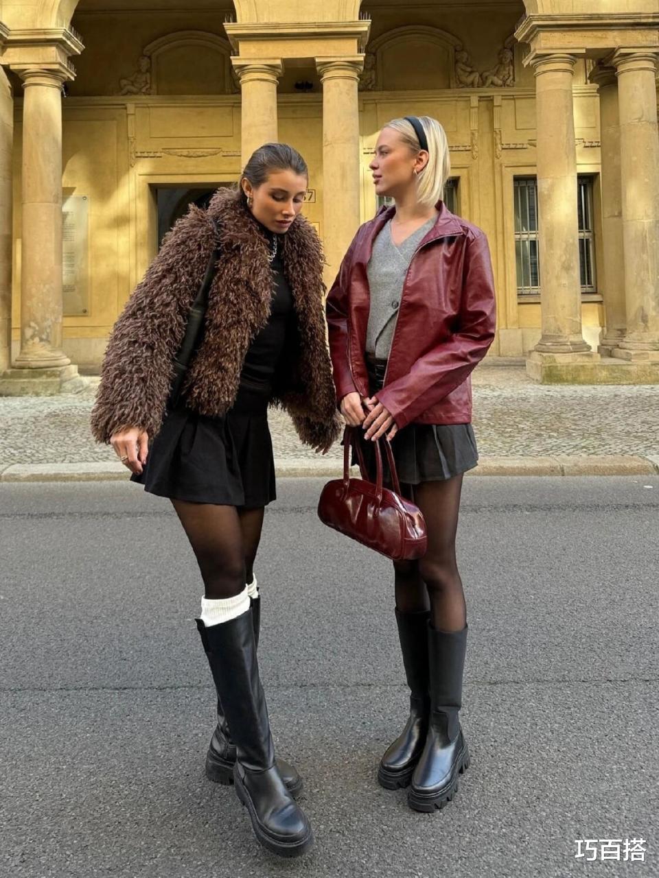 超过膝盖以上的靴筒高度不仅显得繁琐累赘和笨重,而且还会增加搭配成本,和超短裙搭配也很难穿出空间感,膝盖上下三公分没有短裙或靴筒覆盖,是最和谐耐看的。