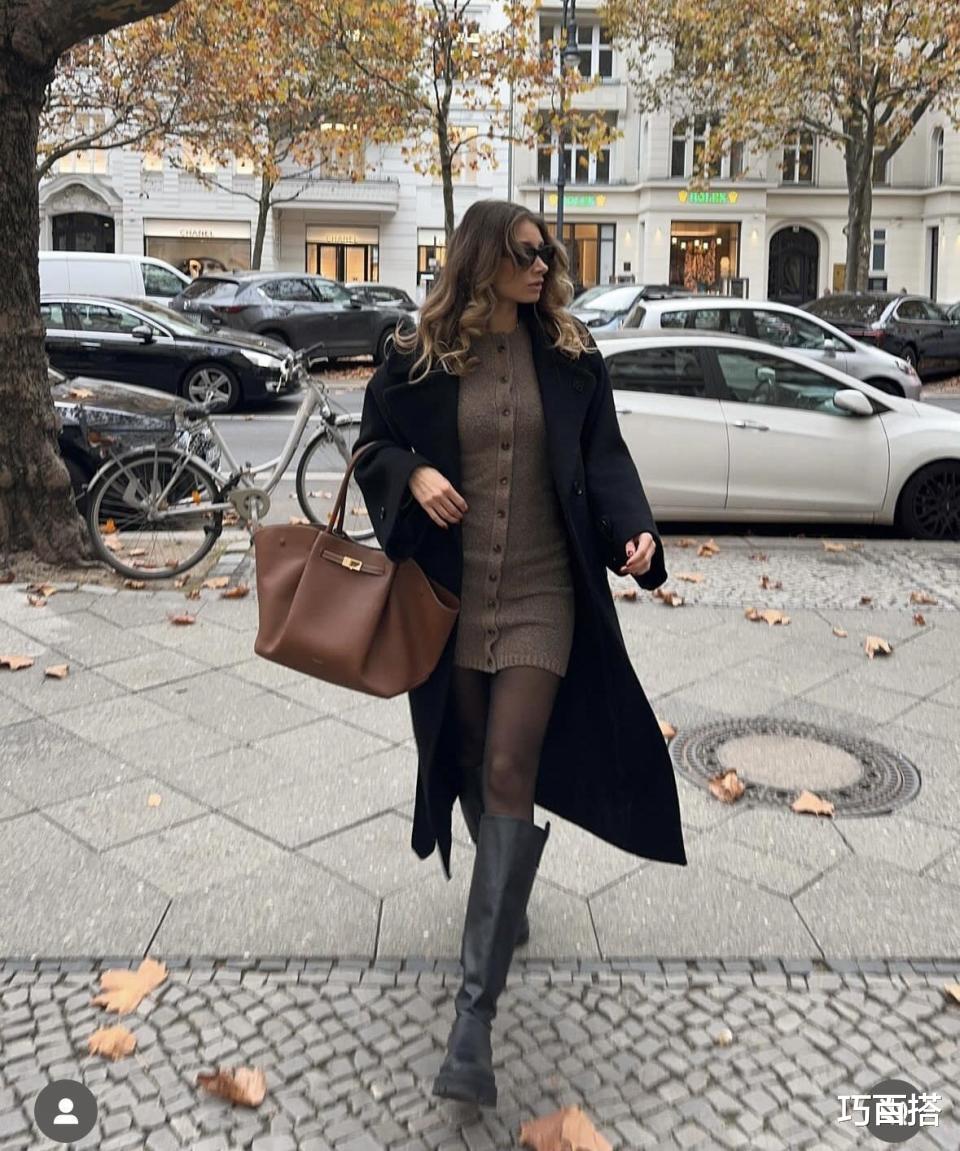 如果大家感觉加绒黑丝上腿略显廉价,或者找不到有质感的加绒黑丝,也可以像博主一样直接选择加绒紧身打底裤,能秀美腿又有质感,即使不露肉也能提升观感,对北方的姐妹来说非常友好。