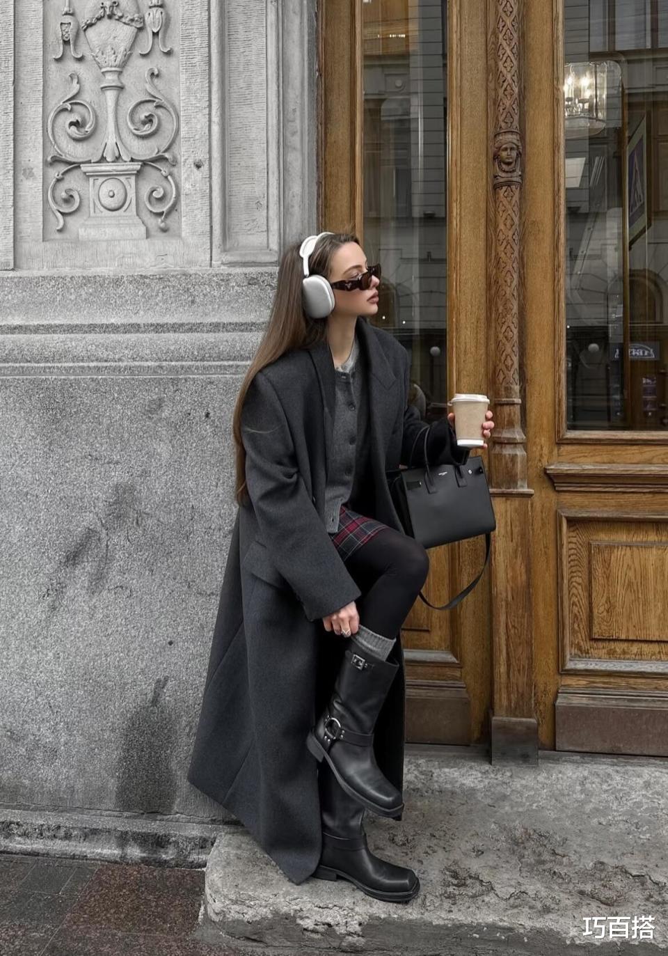当然了,如果你身高有限、腿长有限,直接选择刚好遮住小腿肚的黑色长靴也是OK的,为了提升观感和辨识度,大家尽量里面配上高筒袜,像博主一样露出2-3cm的效果,有层次又高级,轻易不会产生审美疲劳。