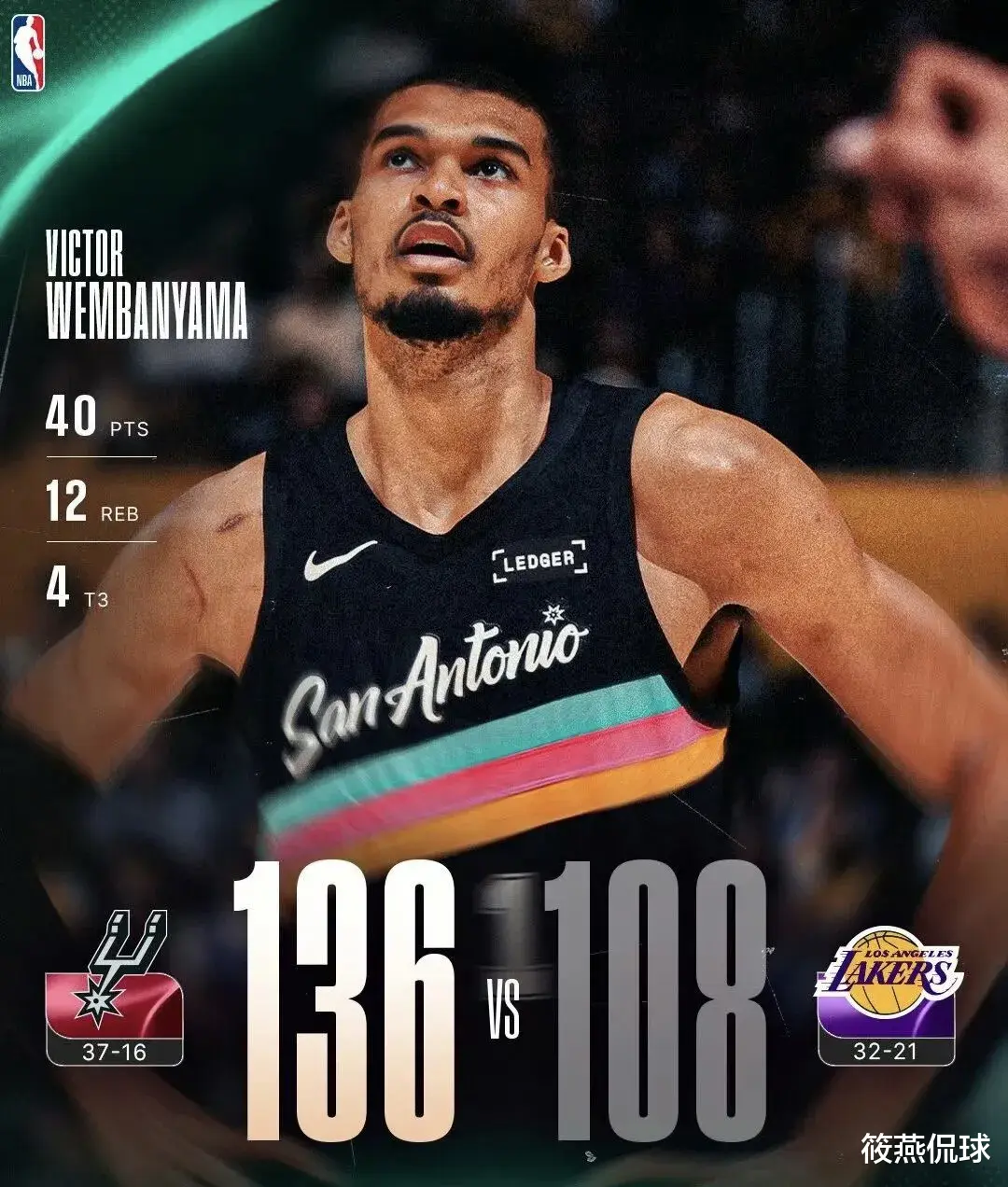 刚刚结束的一场NBA常规赛中,马刺客场136-108轻取残阵湖人。