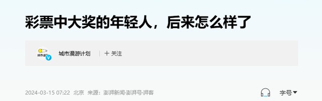 澎湃新闻————彩票中大奖的年轻人,后来怎么样了