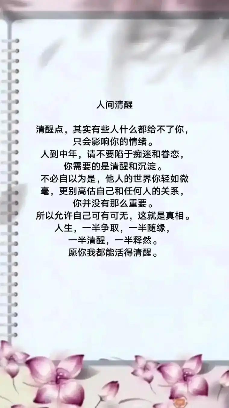当夕阳西下,不妨问问自己:今天我是否既足够清醒地活着,又足够释然地存在着?在人生的织锦上,清醒与释然这两股线交织缠绕,才织就了独一无二的纹理。一半用于认真行走,一半用于豁达放手,如此,方能在有限的人生里,触摸到无限的自由。
