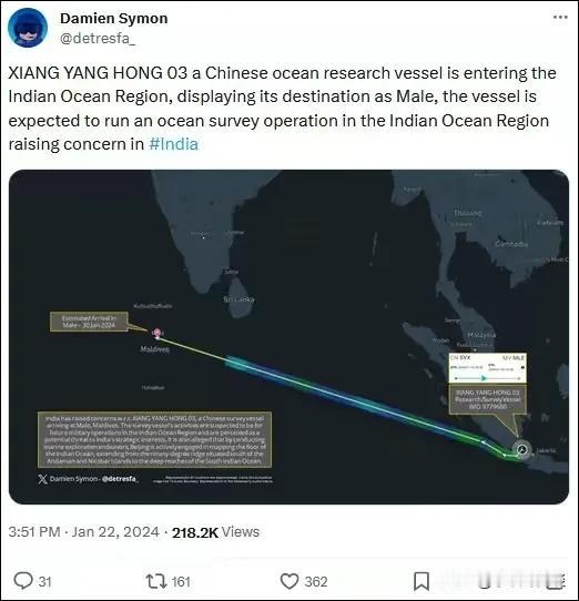 中国一科考船靠岸马尔代夫,印度强烈反对,并派出军舰密切监督,印度这个国家要是强大起来了,准比美国还要霸道!