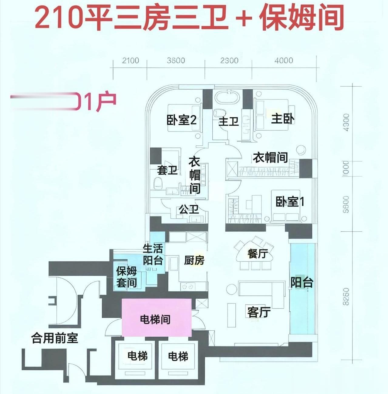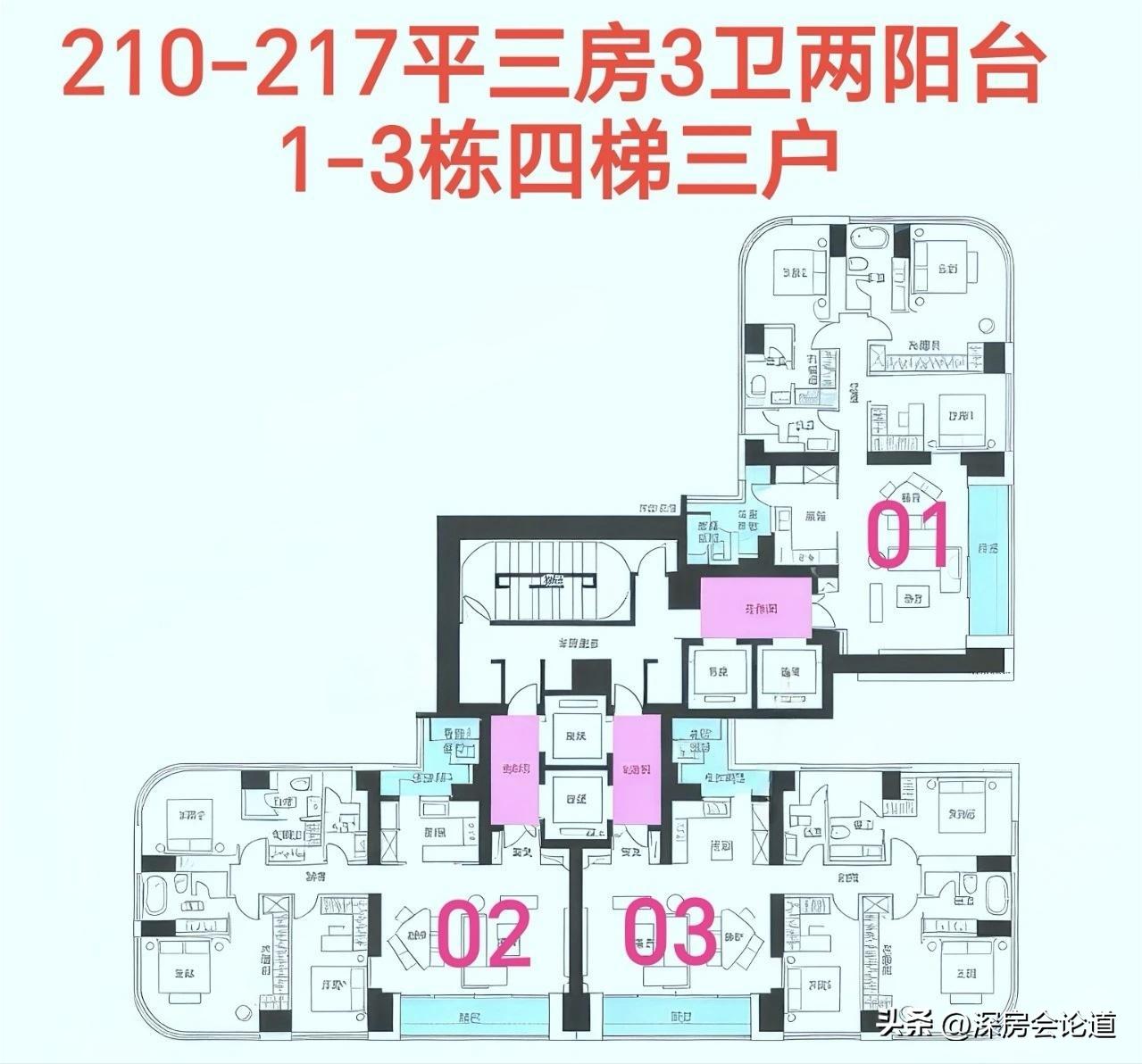信悦湾首开东地块,入门级户型是210平米三房,也是带私家电梯厅。从建筑面积上几乎接近,门槛210平米起。