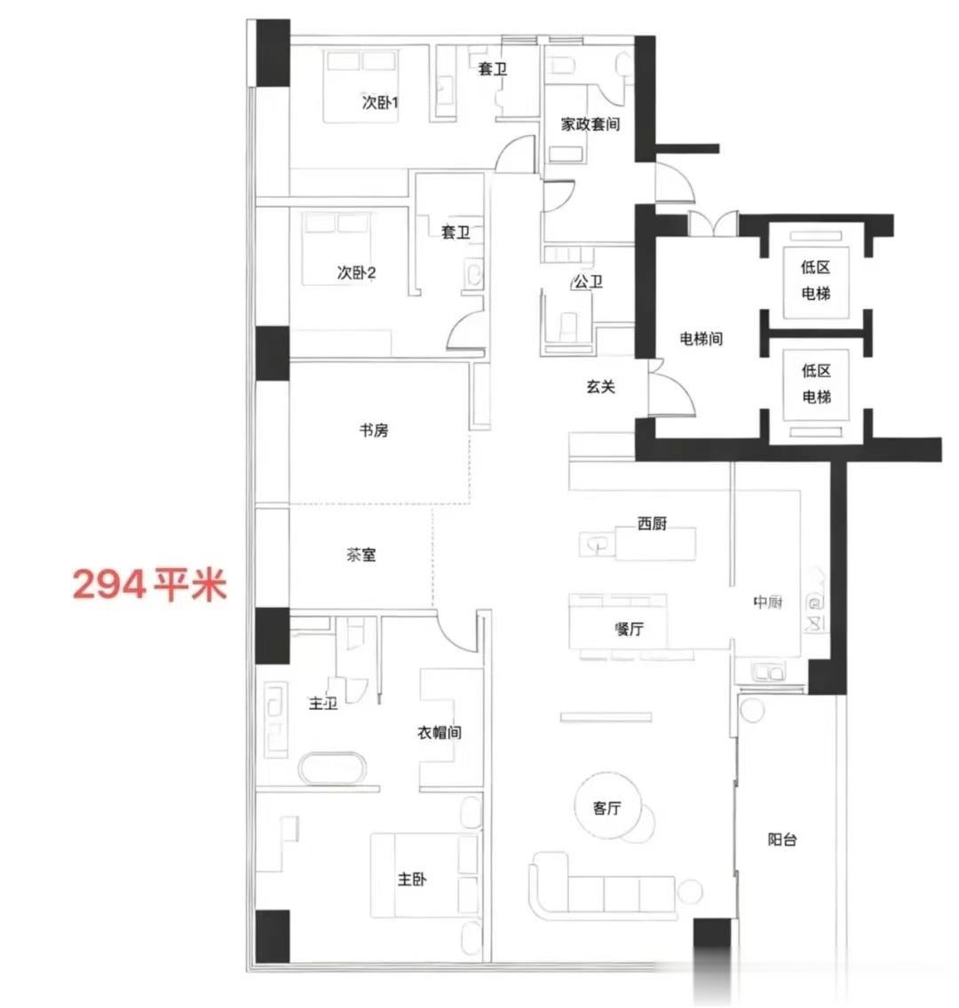 澐玺首开北地块,入门级户型是209平米四房或三房,带私家电梯厅。