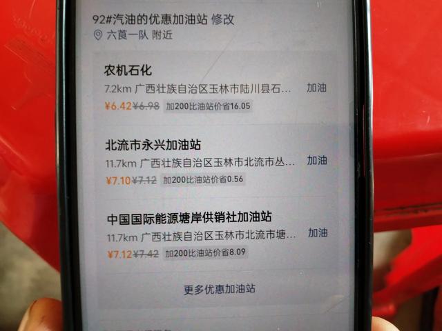 就能快速找到附近的加油站,并查询你需要加油的型号价格,方便你对比不同加油站的油价。比如某加油站的油价是6.42元起,为了省钱,当然优先选择这个加油站。(如上图所示)