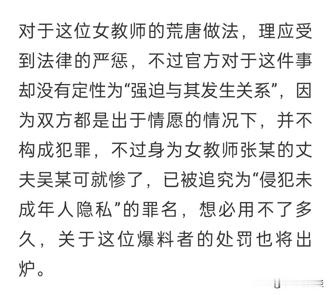 昨日的残梦 17 2024-02-23 11:45 我弱弱问句:大家都说那男孩已经16岁了,成年了,双方你情我愿不构成什么事;但为什么那女的丈夫会触犯未成年人隐私呢? 我的青春 回复 02-23 23:05 婚内出轨算啥?把自己想象那个丈夫 我的青春 回复 02-23 23:06 视频都感拍 还传播 这种就传播色情吧