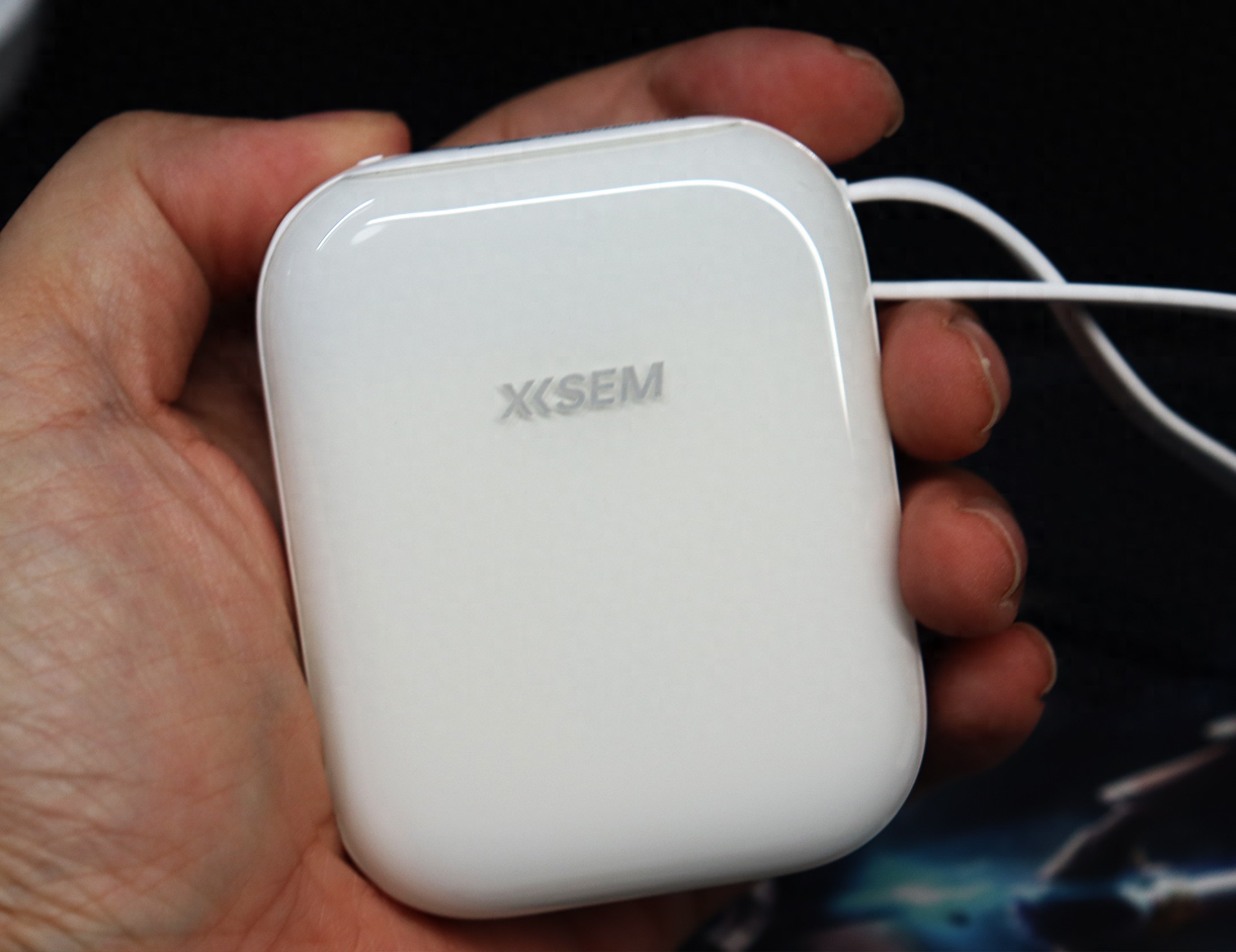 先说说出行最核心的便携性,这也是西圣 PB-S 最让我惊喜的点。它的机身尺寸仅 74.5×60×28.4mm,官方标注约一包手帕纸大小,实际拿在手里,比我的 AirPods Pro 充电盒大不了一圈,甚至能轻松塞进牛仔裤口袋、西装内袋,完全不会像传统充电宝那样,揣口袋鼓囊囊一大块,走路都硌得慌。