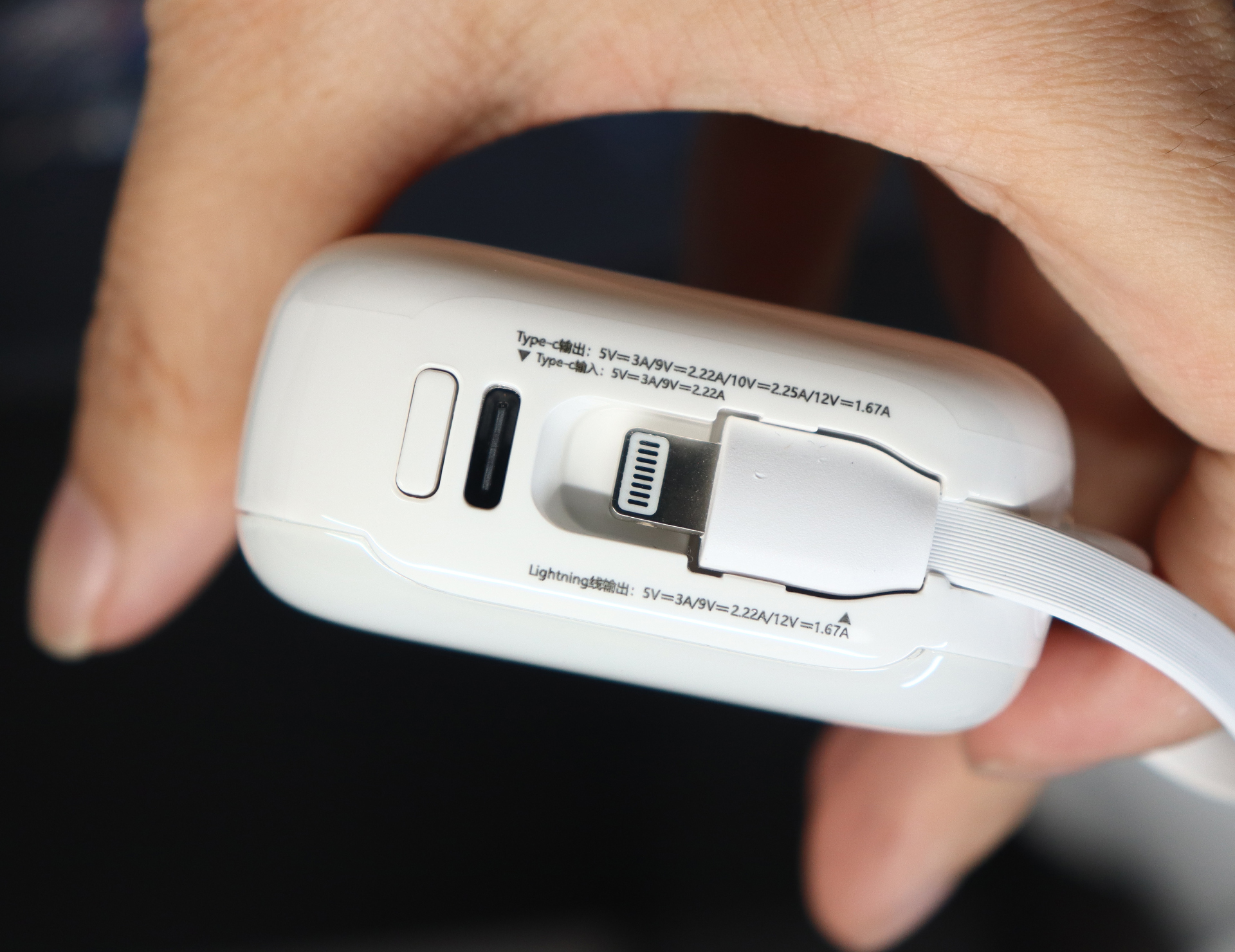 如果说便携性是它的加分项,那自带双线的设计,就是直接戳中出行党核心痛点的「绝杀技」。相信很多人都有过这样的经历:出门前特意装了充电宝,到了高铁站才发现忘了带充电线,只能看着低电量的手机干着急;或是包里的充电线和耳机、钥匙缠成一团,解半天解不开,尴尬又耽误事。