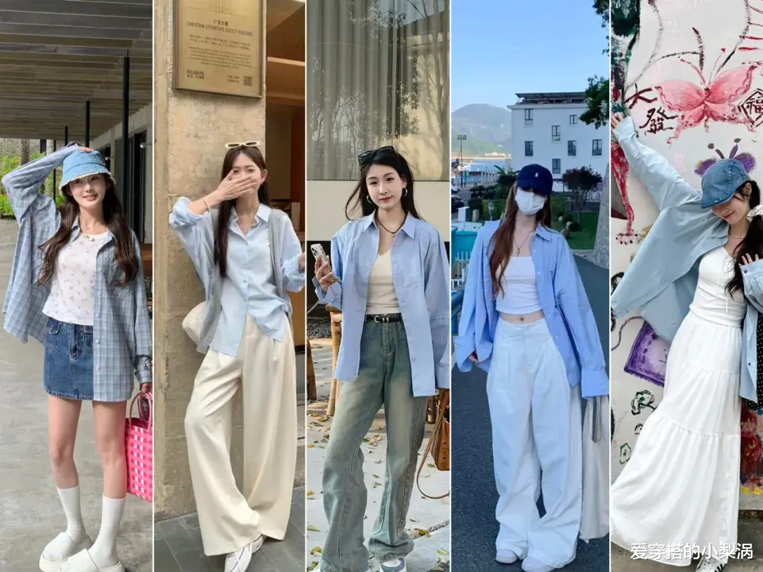 * 蓝衬衫搭配小白裙,清纯又美好,如初恋一般
