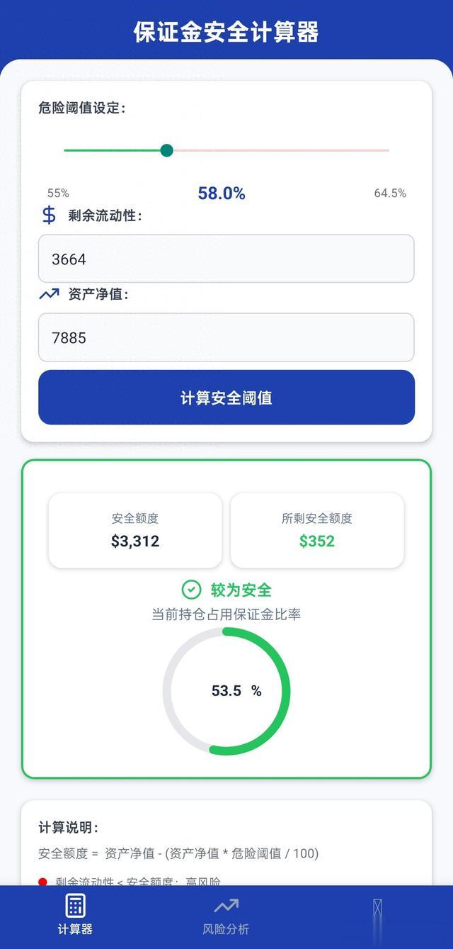 这个计算器就是这样被设计出来了。它根据你输入的数据,帮你计算你心里的预期安全阈值,我还剩多少保证金。