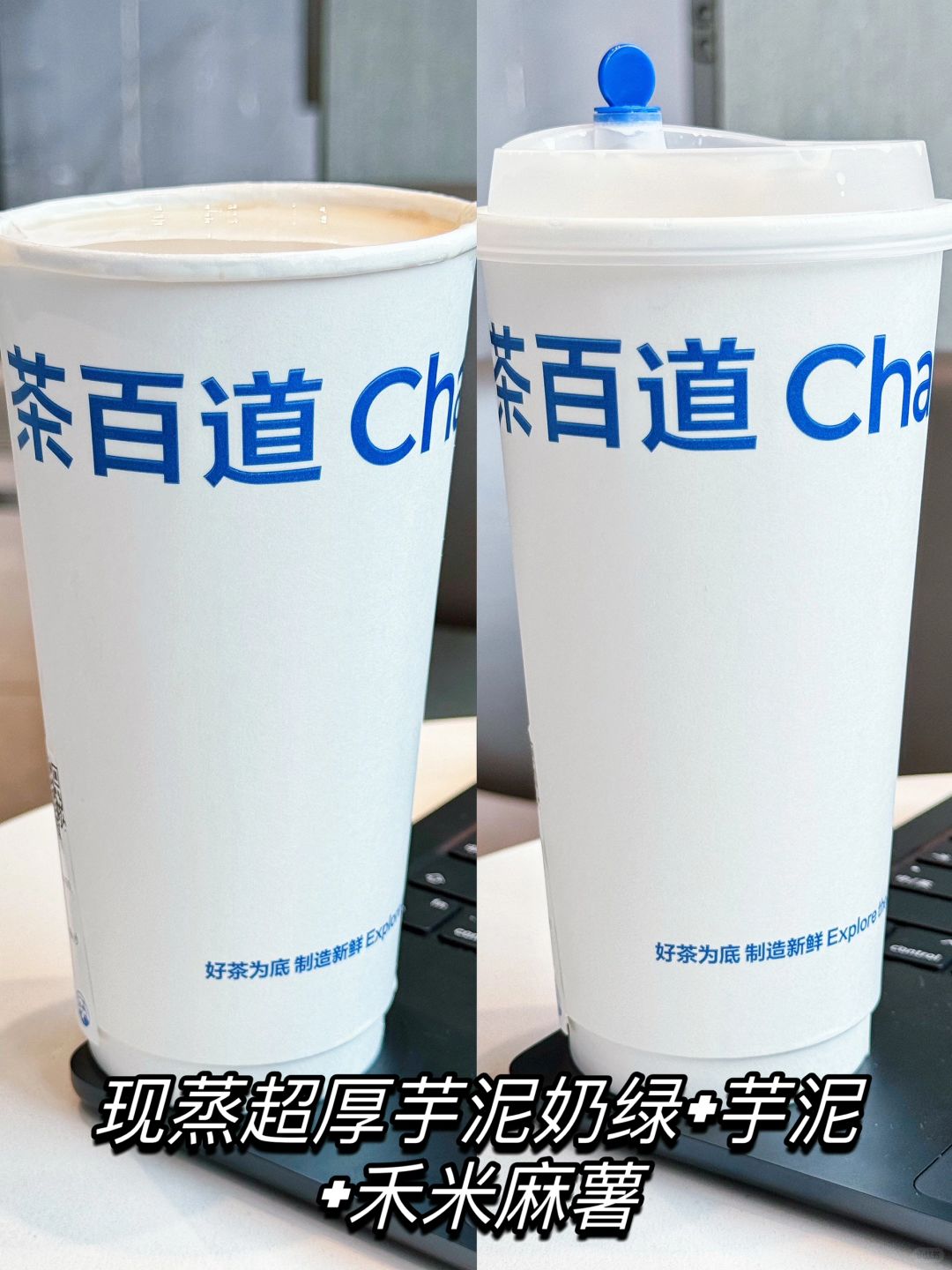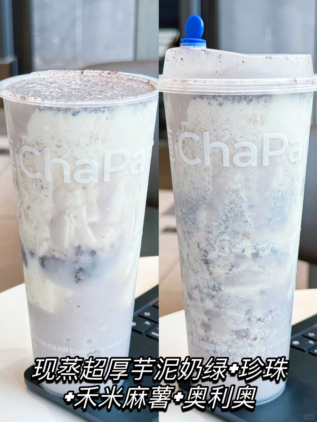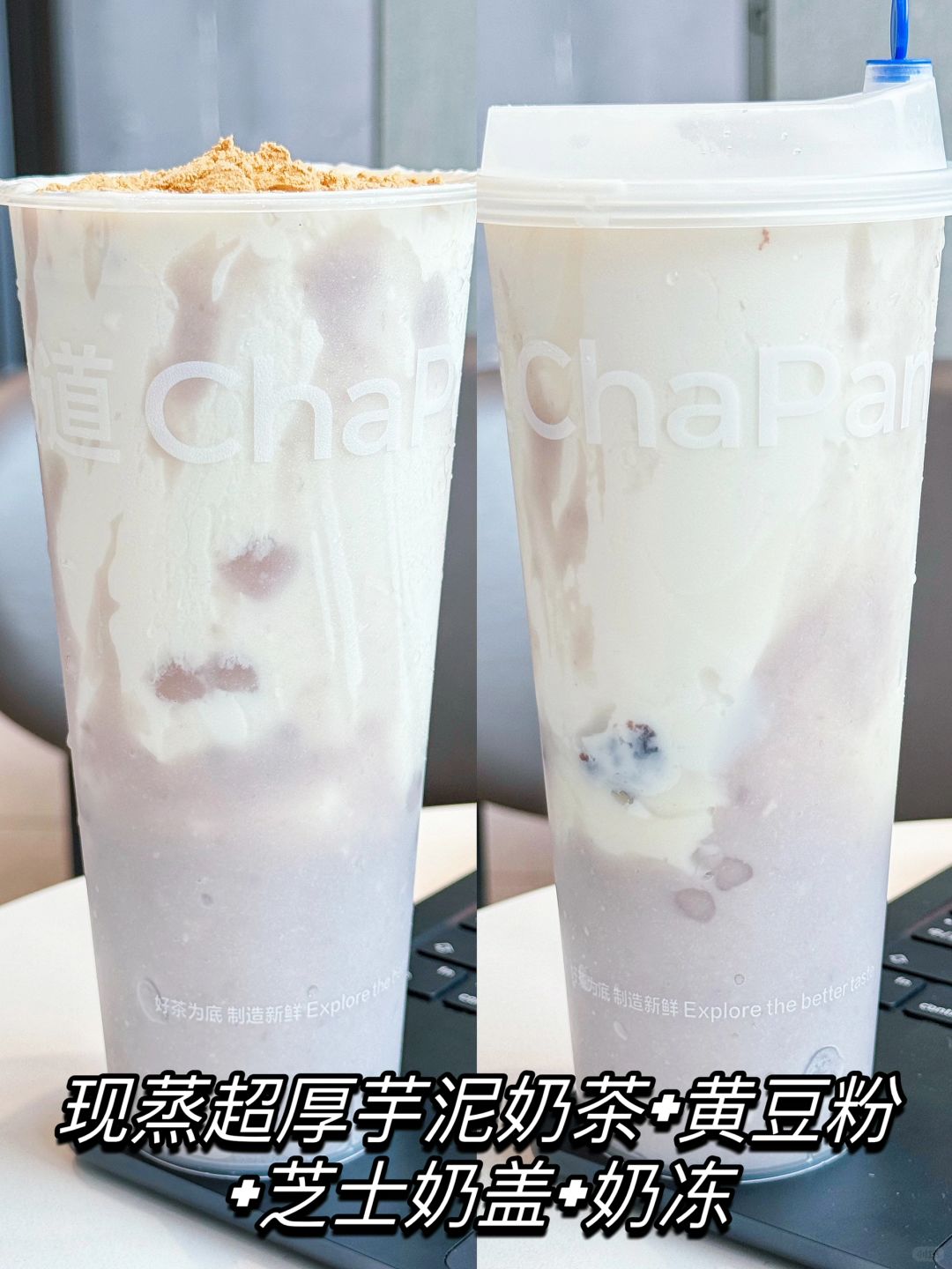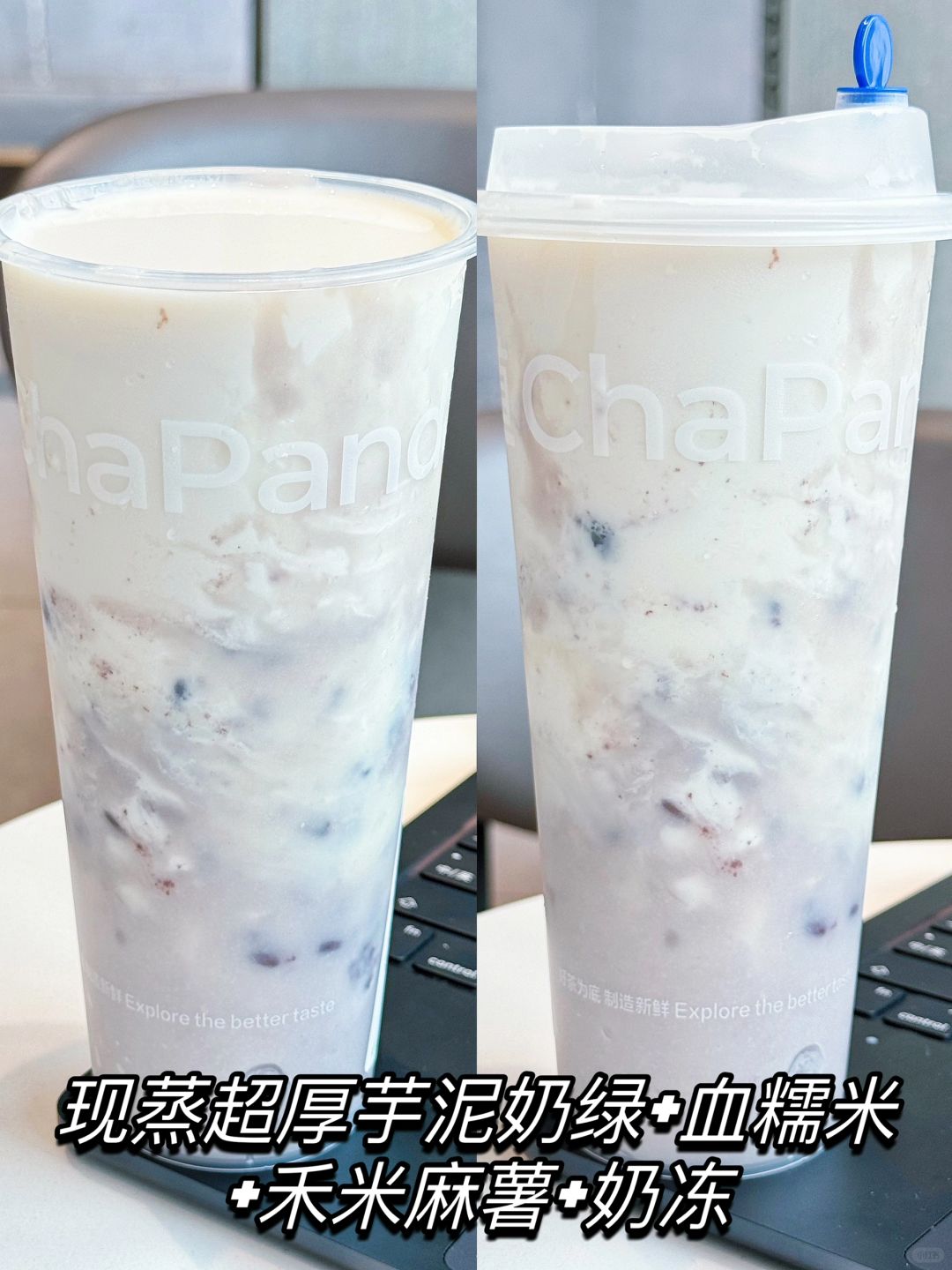 这个真的是超厚芋泥堪称离谱,加量20%之后整杯都是咯,芋泥脑袋直接被拿捏! 作为一个奶茶届的新手,还得是公主们介绍的点单攻略YYDS,哈哈哈哈,我真的学到了,每一杯都是搭配得恰当好处,冬天这杯热牛奶芋泥粥为什么不能是早餐! 来吧,超厚芋泥系列就应该这样喝,跟我一起抄公主们的作业吧: ✅现蒸超厚芋泥奶茶+黄豆粉+芝士奶盖+奶冻 ✅现蒸超厚芋泥奶绿+血糯米+禾米麻薯+奶冻 ✅现蒸超厚芋泥奶绿+珍珠+禾米麻薯+奥利奥 ✅现蒸超厚芋泥奶绿+芋泥+禾米麻薯