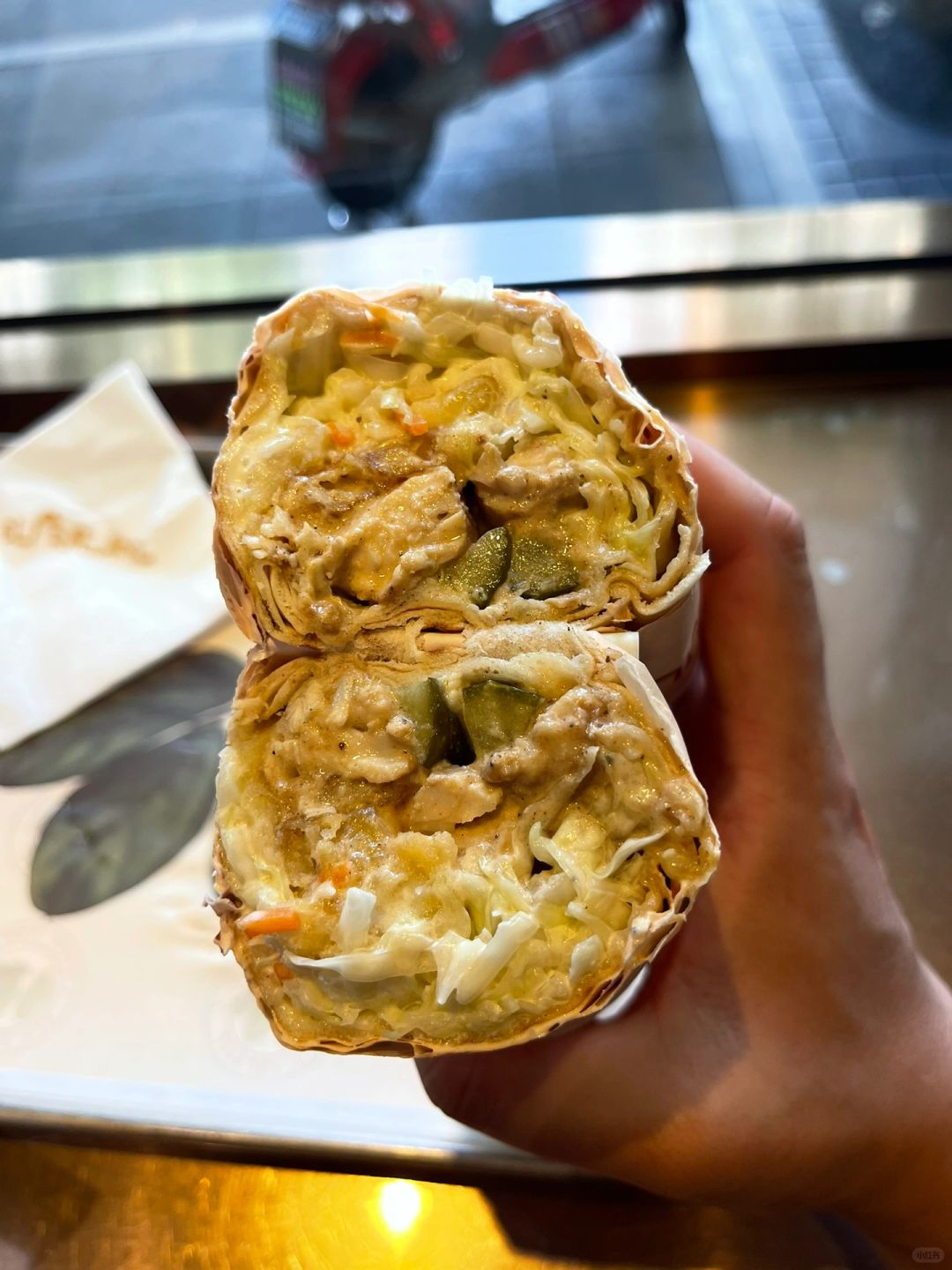 这个热量好高但是好好吃啊!鸡肉皮塔卷份量会比较小一点