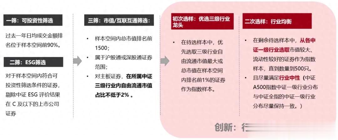 其实如果了解一下中证A500指数的选股方案,就不会觉得它简单。它并不是单纯选择全市场市值最大的500只股票,而是先做流动性筛选和ESG排雷,剔除掉没啥成交量,以及有明显经营隐患的个股。