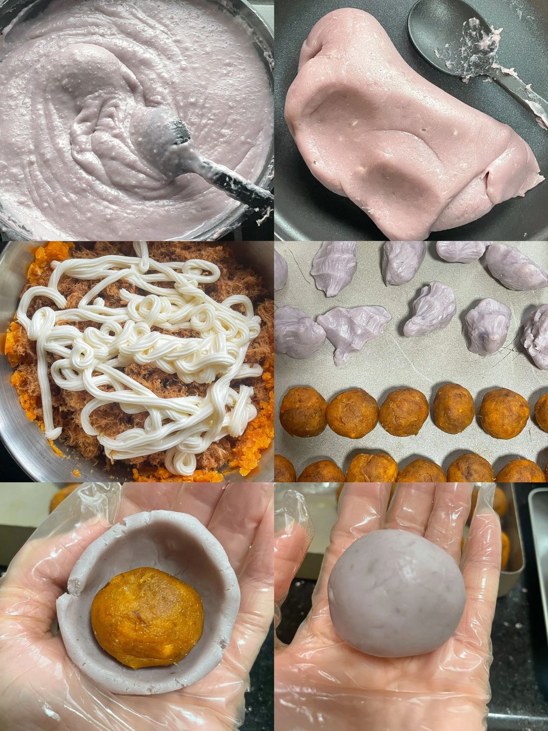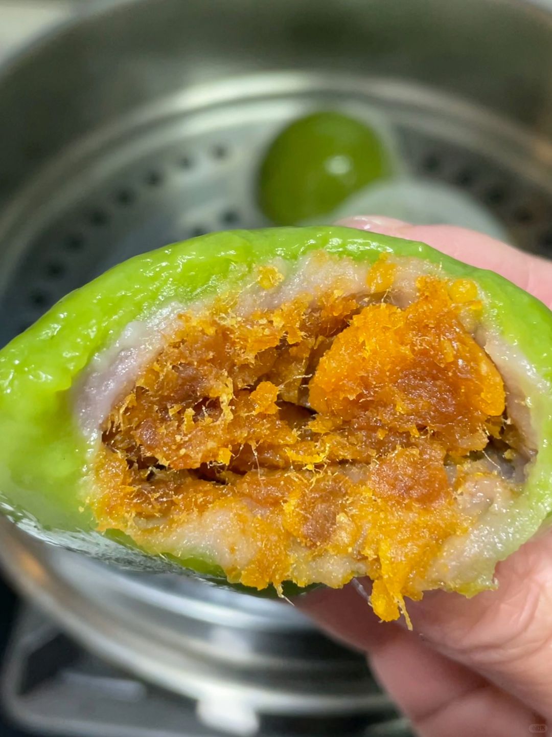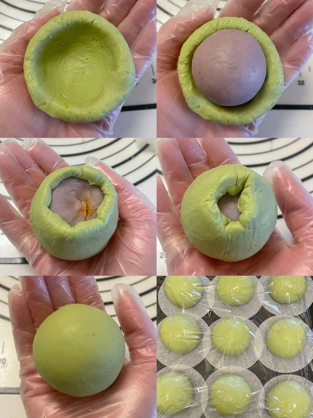 5️⃣青团皮40g/个,馅料35g/个(20g芋泥+15g咸蛋黄肉松)