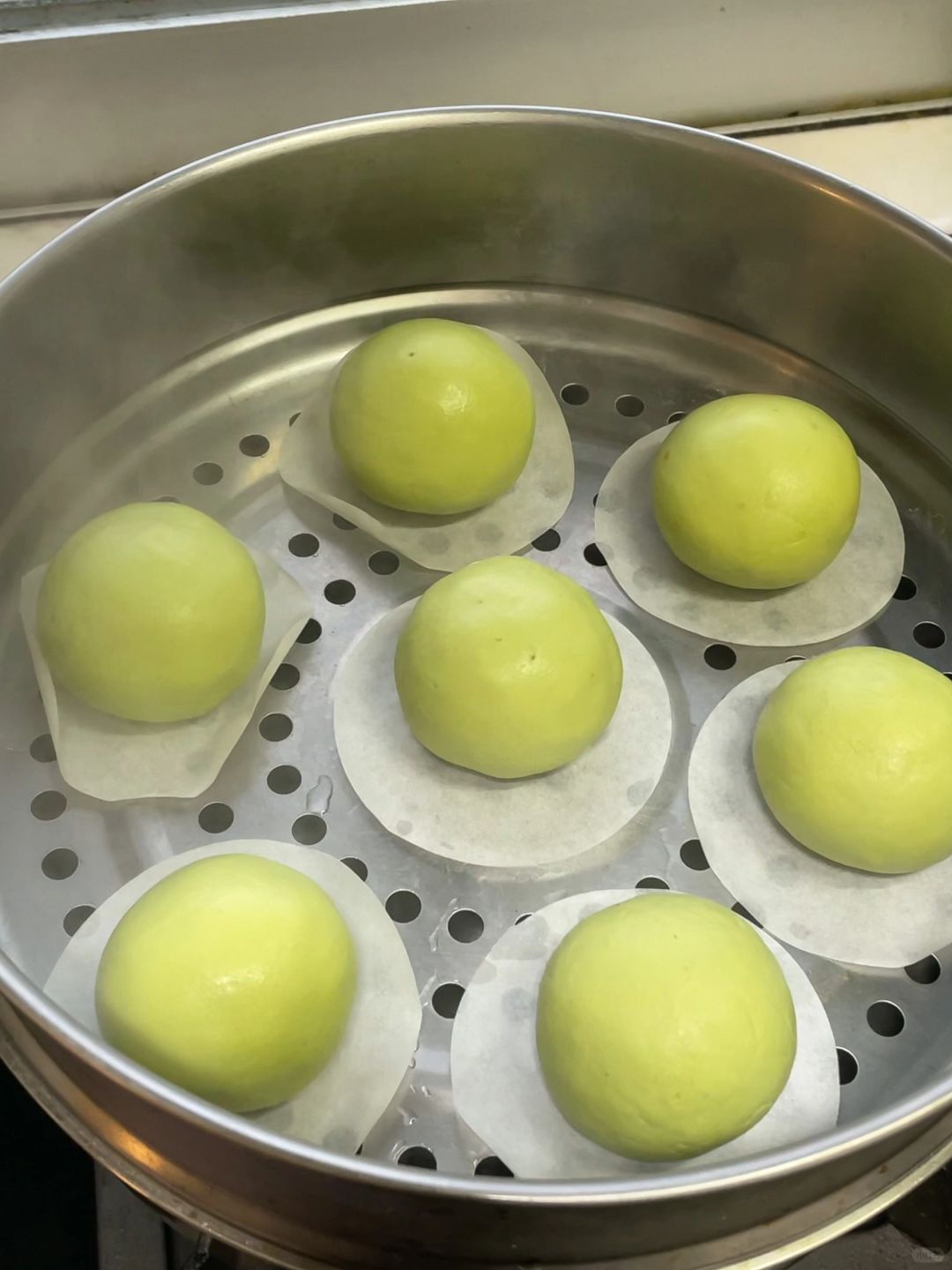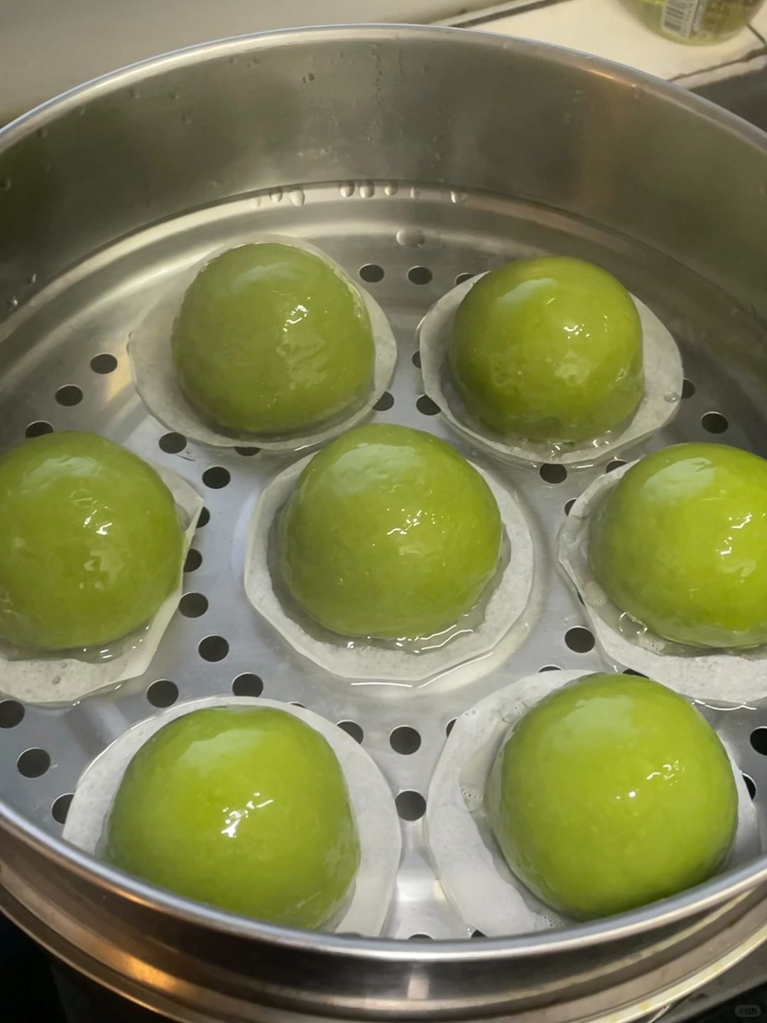6️⃣包好的青团放上蒸锅,水开后,中大火蒸10分钟