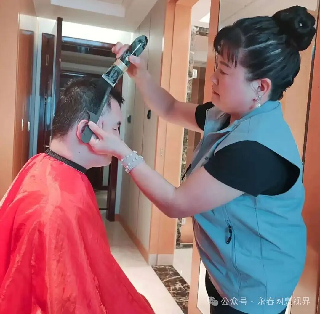 活动现场,永春县助困公益协会125人次的志愿者身影活跃在会场的每一个角落,成为一道动人的风景线。他们分工明确、默契协作:入口处,耐心引导每一位参与者,用清晰的指引保障人流有序疏导;后勤岗上,细致核对物资、及时补给需求,以严谨态度确保活动流程无缝衔接;无障碍服务区,小心翼翼搀扶残障人士入场就座、协助上下舞台,用坚实的臂膀撑起安全屏障;后台区域,或陪伴演员反复打磨节目细节,或拿起理发工具细致修剪发型,用专业贴心的服务助力每一位表演者以最佳状态绽放光彩。