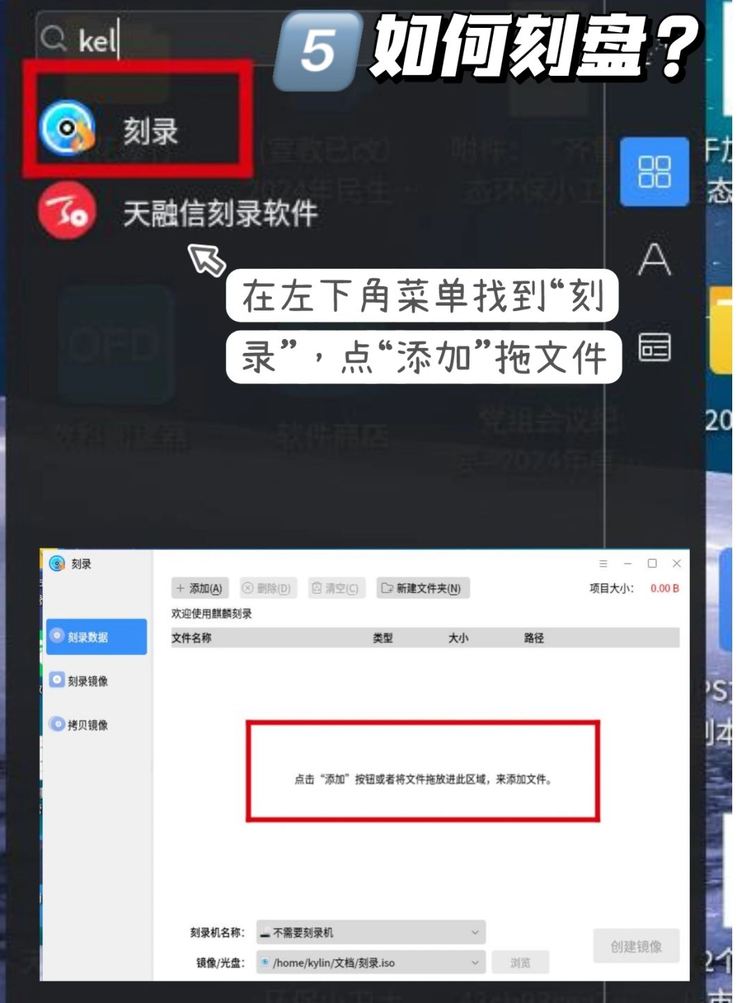 在左下角任务栏中搜索“刻录”,记住就这简单两个字,其他的不是。点击弹出的“添加”按钮,进行刻盘。这可能是该电脑蕞好用的一个技巧了。