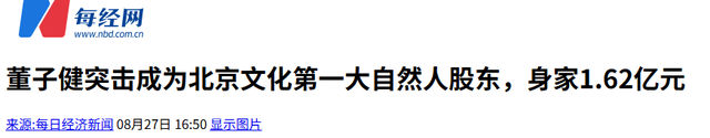 《董子健突击成为北京文化第一大自然人股东,身家1.62亿元》每经网