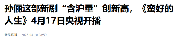 《孙俪这部新剧“含沪量”创新高,《蛮好的人生》4月17日央视开播》新民晚报