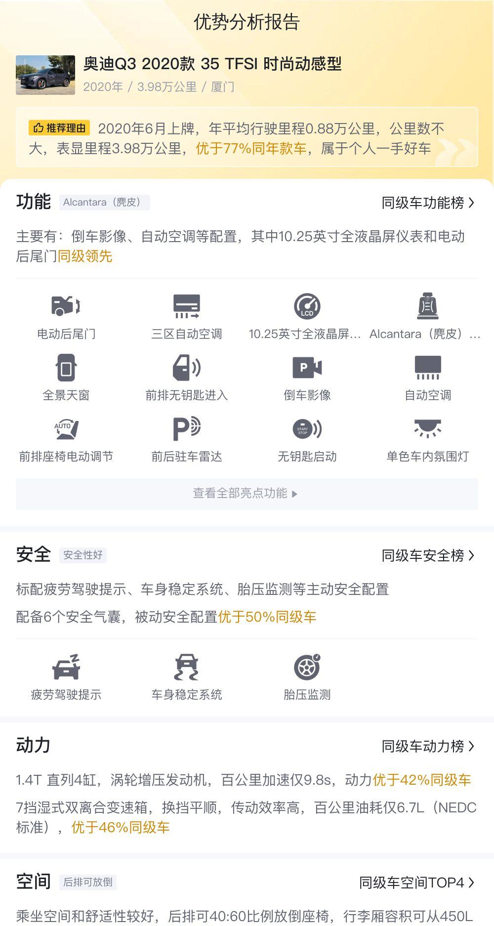 先别急着下结论,咱们先从这辆车的基本信息入手。2020款奥迪Q3 35 TFSI 时尚动感型,上牌时间2020年6月,福建厦门牌,行驶里程不到4万公里,原价将近29万,现在只要13万不到。这价格,确实很吸引人。而且,车辆符合国六排放标准,过户次数为零。单从这些表面数据来看,这辆车似乎没有什么问题。