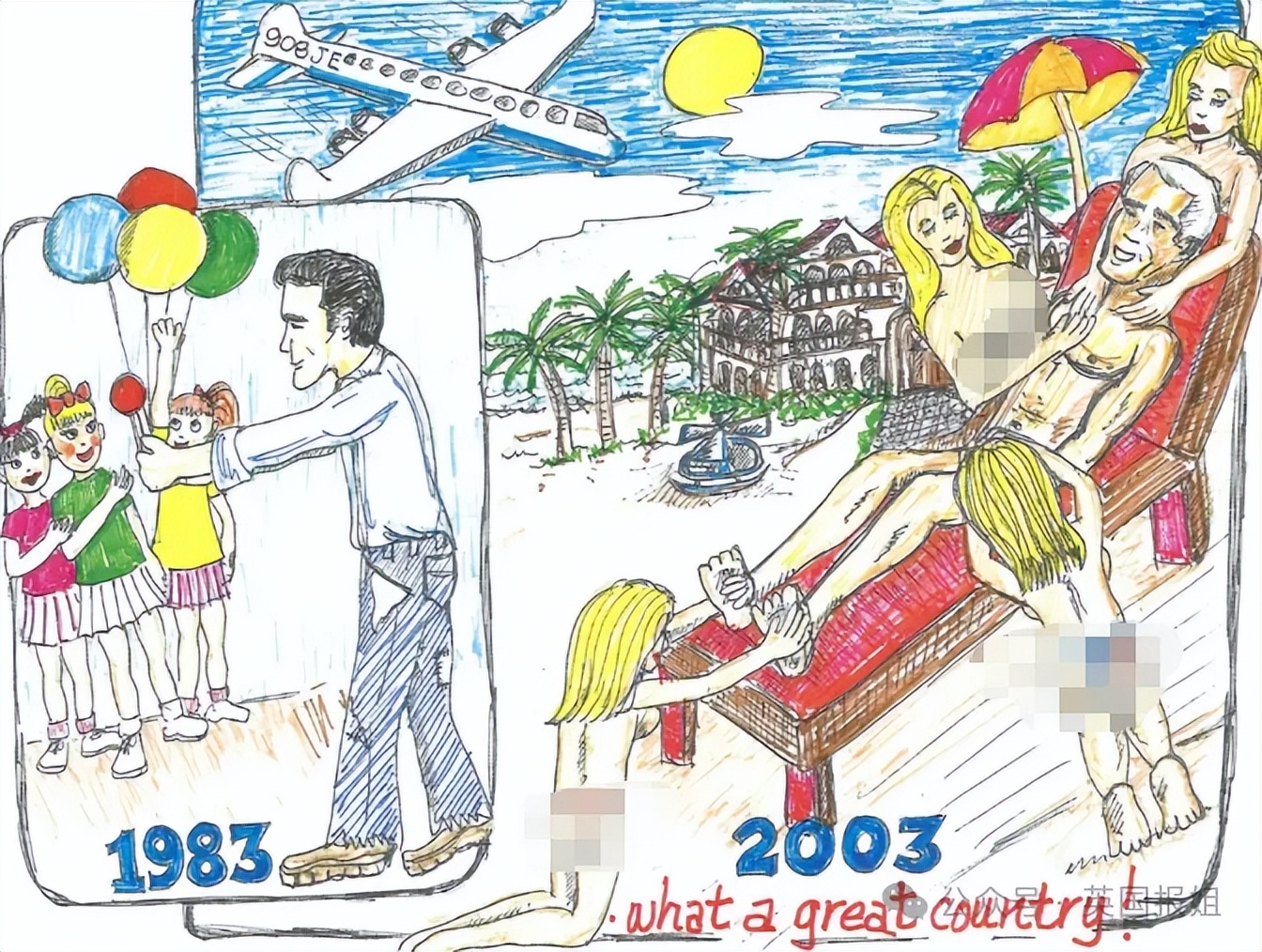 在前不久公布的爱泼斯坦50岁生日纪念手册里,也出现了他和女孩们乘坐飞机、在红色天鹅绒沙发上按摩的手绘画。足以见得,有些指证很可能就是事实。