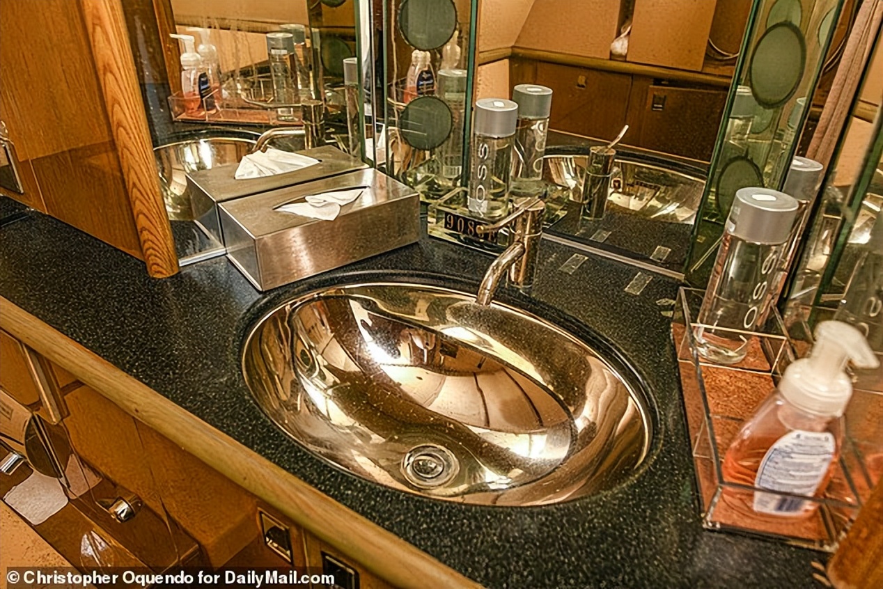 为让客人们享受到顶级入住体验,机舱内还特别设立了厨房和多个卫生间。备品间里各种饮品、纸巾、咖啡一应俱全,客厅和淋浴间角落里还放着婴儿油。