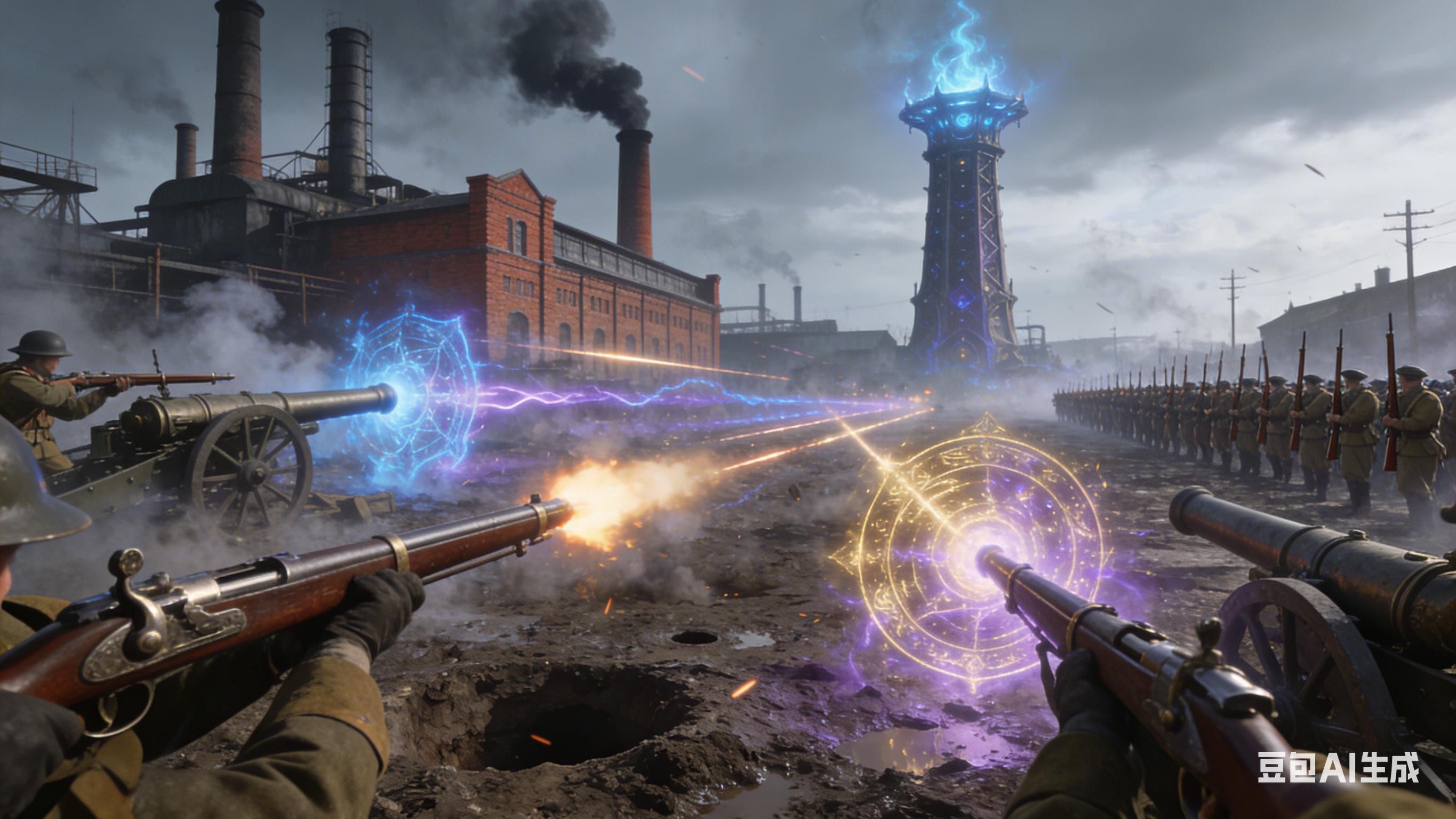 书个世界介于 20 世纪初期的战火与奇幻魔导之间,步枪火炮的轰鸣与魔法附魔的光芒交织在一起。