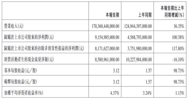 归母净利润是 91.55 亿元,同比暴增 100.38%,是特斯拉一季度的三倍,相当于一天净赚 1 个小目标。