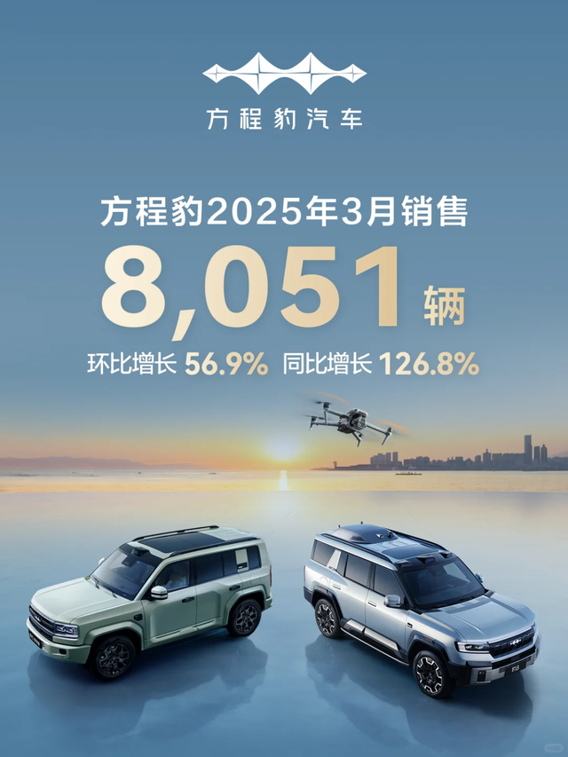 到 3 月份,豹 5 销量立马起来,一共卖了 6036 台,相比 2 月份直接翻倍,和坦克 300 销量差不多了。而另一款定位更高的豹 8,也卖了 2015 台。