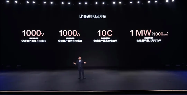 另一个动作就是 3 月份发布的兆瓦闪充,1000V 平台,1000A 的大电流,10C 倍率,总共 1000kW 的最大充电功率。