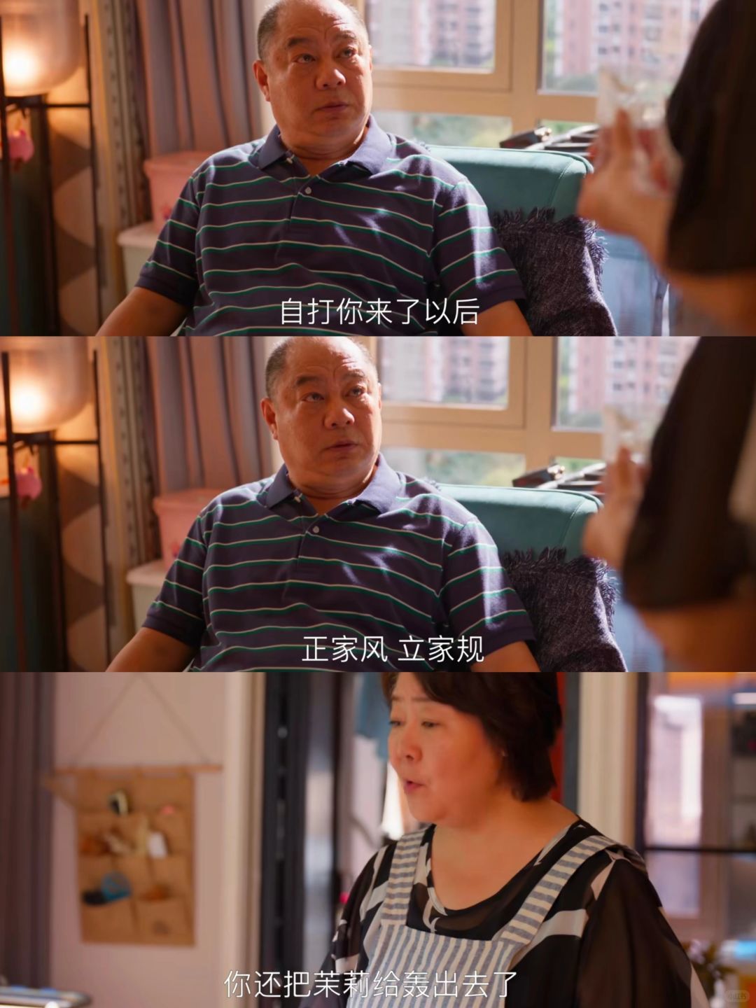 ‼️剧中朱劲草(陈晓 饰)长期出差,担心爸妈吵架,也知道父亲对老妈不好,所以拜托老婆顾茉莉(童瑶 饰)保护老妈,结果没想到还真是,茉莉在监控里看到公公家[石化R]暴婆婆,立马回家救她!