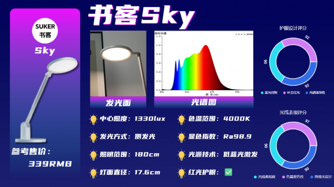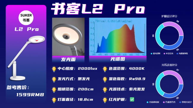 为了提供更贴合青少年用眼需求和舒适的照明体验,SUKER书客也是大下功夫,全面优于国AA标准,显色指数实测接近满分的Ra98.9,以及具备较上代提升146%耐用性能的PLP光电处理器,光源更稳定,符合RG0无蓝光危害和无可视频闪。还具备自由调整高度到80cm、支持45min定时模式、自动开关灯等多种功能,满足不同的用眼需求。难怪有知名数码媒体给出了非常高的评价:被誉为旗舰护眼台灯的巅峰之作。