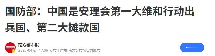 《国防部:中国是安理会第一大维和行动出兵国、第二大摊款国》南方都市报2025-04-24