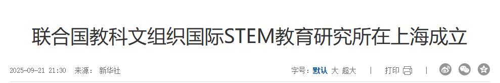 去年年9月,联合国教科文组织国际STEM教育研究所在上海正式挂牌成立,这个机构的级别非常高,是教科文组织在全球设立的首个一类中心,也是首次在欧美以外的国家设立此类机构。