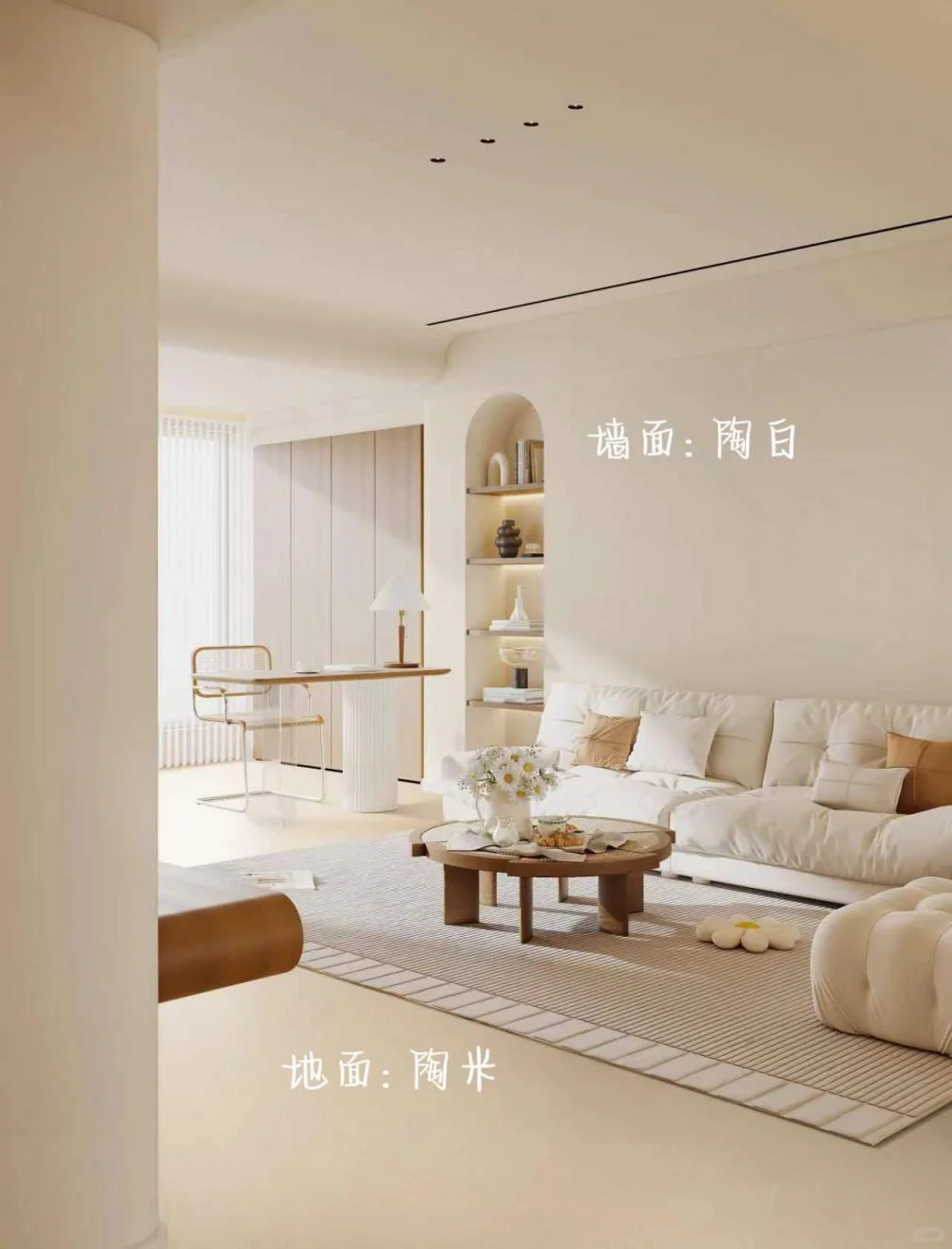 家里也融入了奶油风的弧形元素,柱子和有棱角的地方基本都被我包圆了!让家里看上去更加柔软和奶呼呼[耶R]