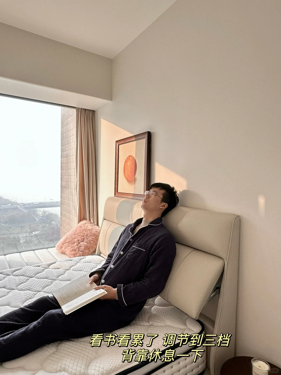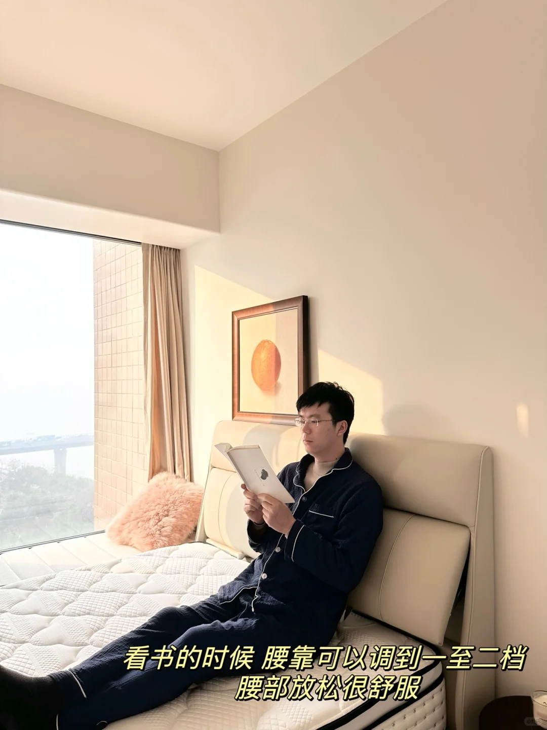 因为我晚上喜欢坐床上玩手机📱,而我老公喜欢看看书📖