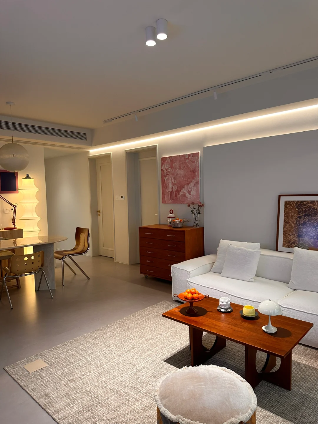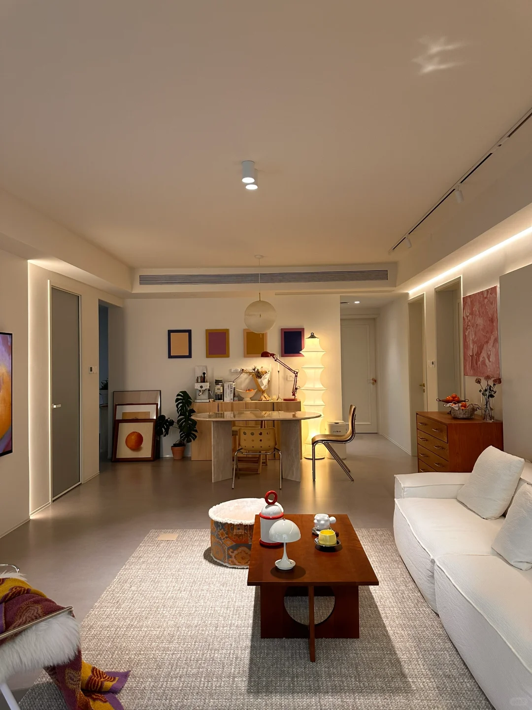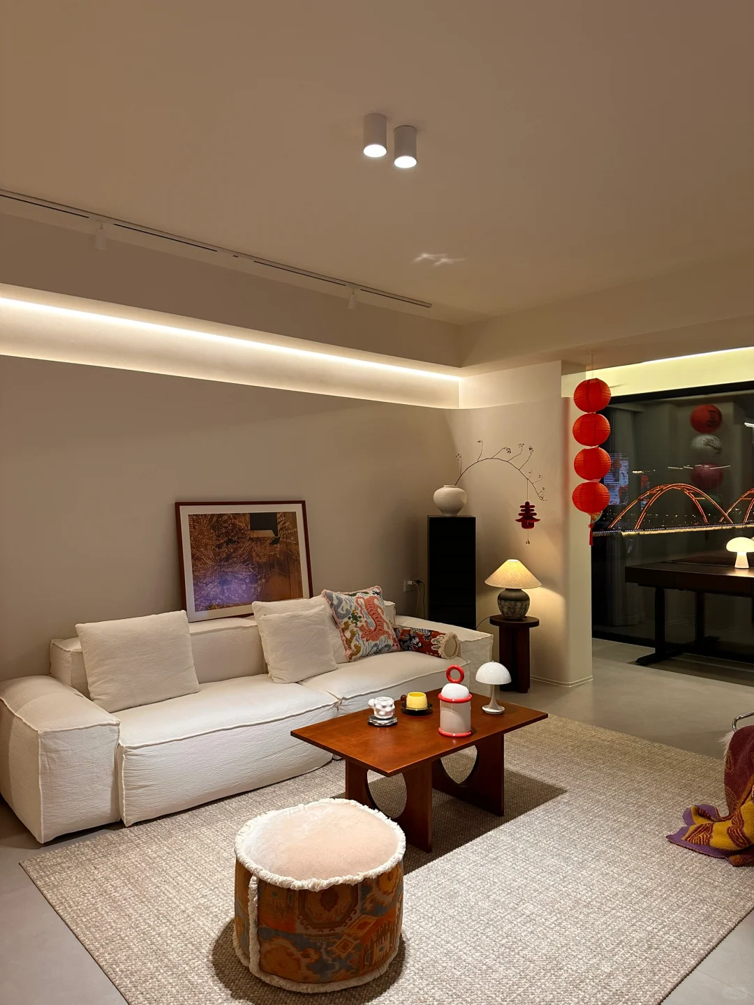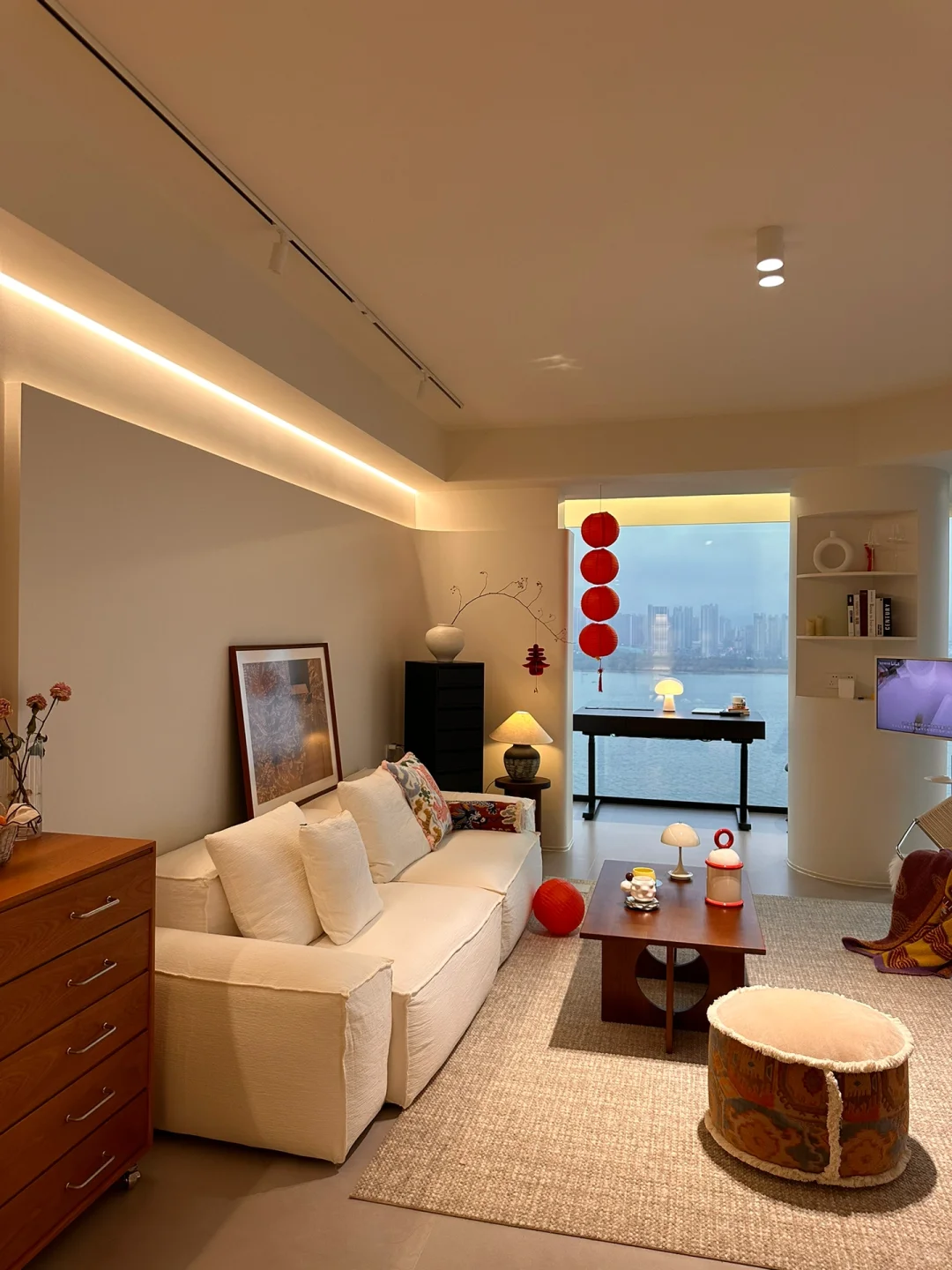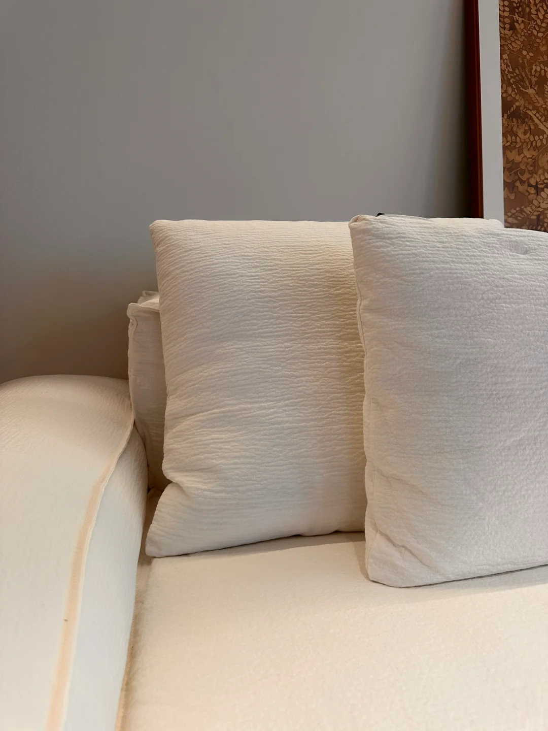 就是每天都不想出门! 特别是冬天❄️呆在开着地暖的家里。 每天都在琢磨怎样可以让家里更好看![赞R] 我家硬装造型上比较简单 公区没有做成品柜 软装上就更灵活多变 可以因时因心情改变自己喜欢的软装风格[害羞R] 棕色沙发看腻了之后 换了[打卡R]莫语的艾丽娅沙发好爱啊! 诧寂风的感觉越来越浓郁 软软的 懒懒的 好舒服~ 可以拆洗 有娃有宠的家庭也不再怕的[派对R]