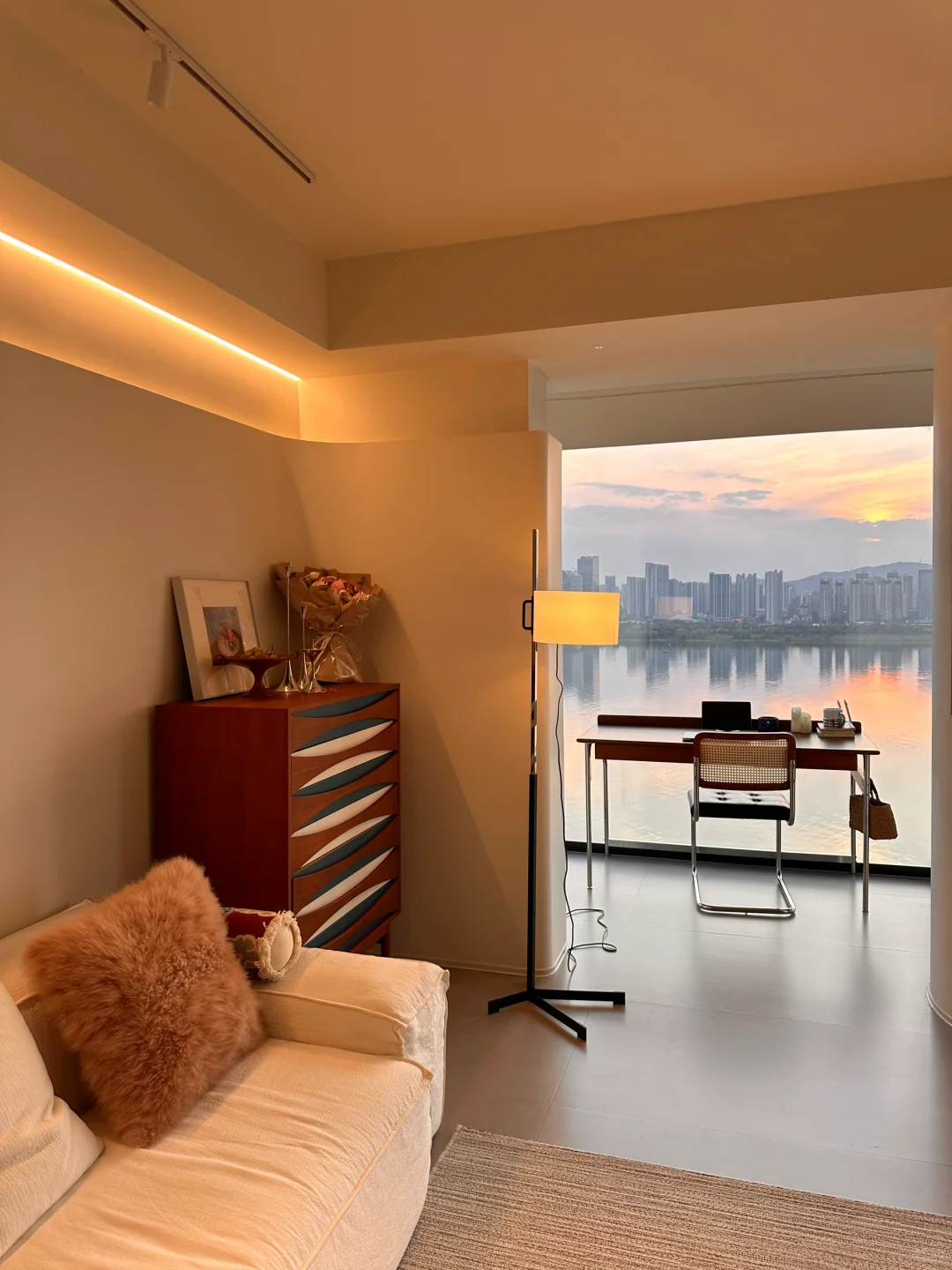 跟着学装修 无滤镜的家 家居灵感 家居家装日常 江景房 新家入住 设计落地 极简装修 装修灵感 夕阳 长沙