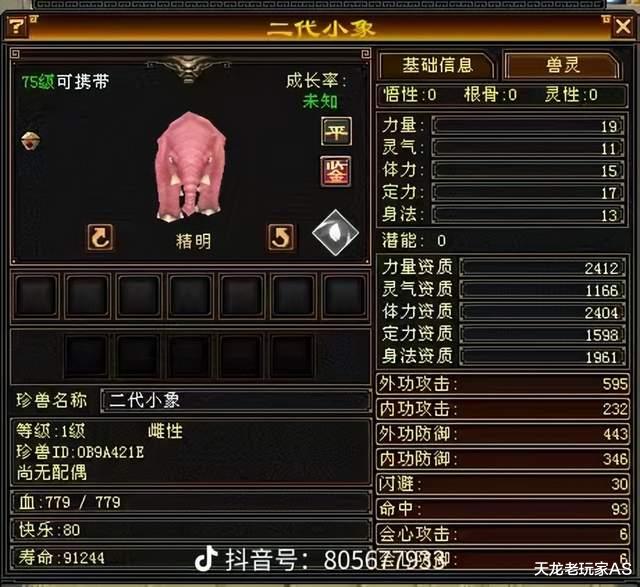 同样是精明粉色小象,可惜成长率未知——按照天龙惯例,未知一律按杰出来算。