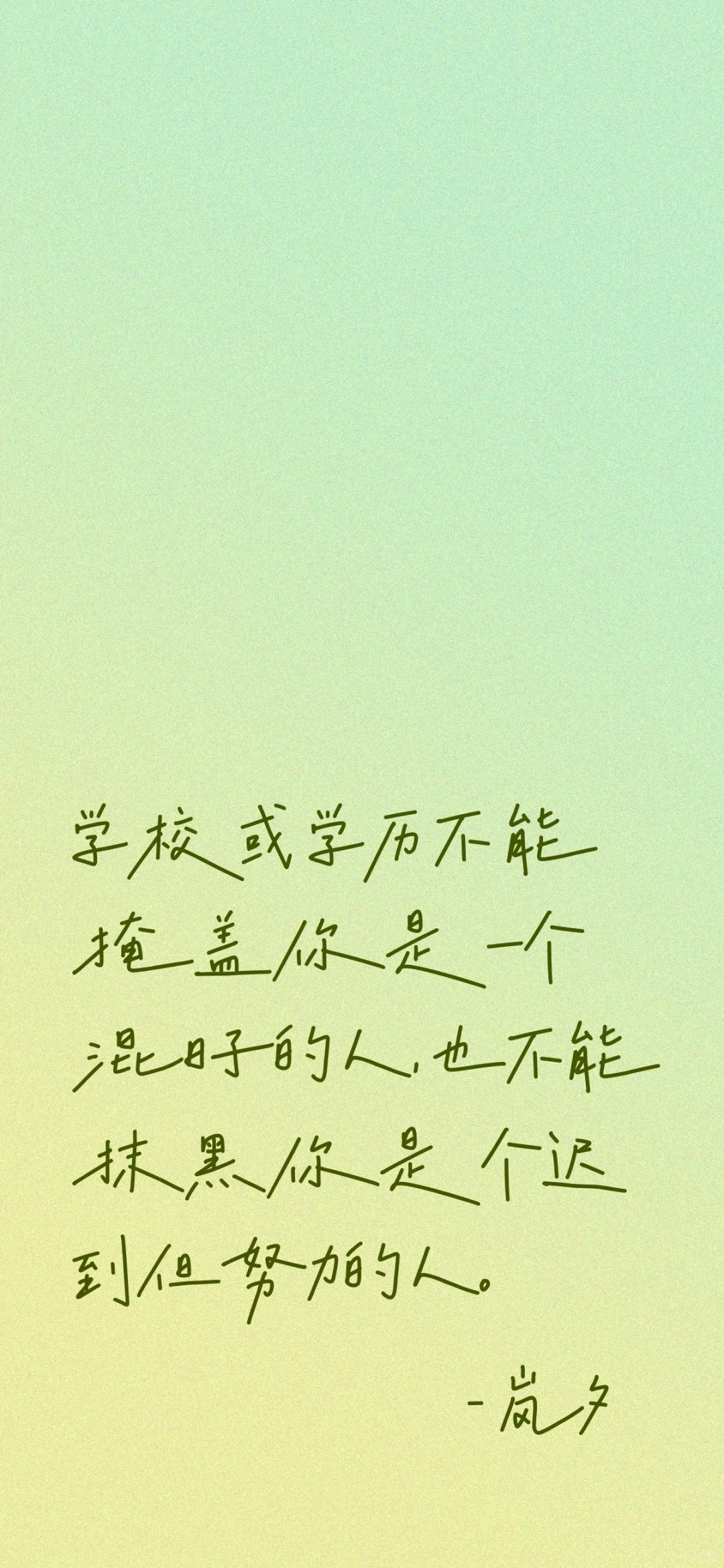 学校或学历不能掩盖你是一个混日子的人,也不能抹黑你是个迟到但努力的人。 谢谢有心设计的壁纸有需要的留言取图。