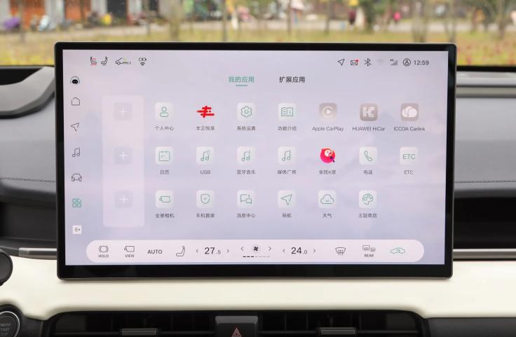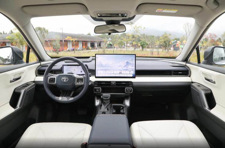 聚焦座舱内部的车机配置,新车基于中国丰田本土化团队打造开发智能座舱,搭载15.6英寸中控屏,屏幕边框较窄,且屏幕UI设计风格为流行的Pad样式,和主流国产新能源车机风格相似,拥有各类主流的车机App软件。此外,车机配备的语音识别控制系统还集成了丰田语言大模型,支持方言识别、四音区识别、10余种手势互动控制。