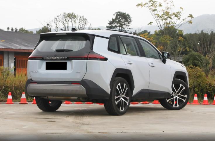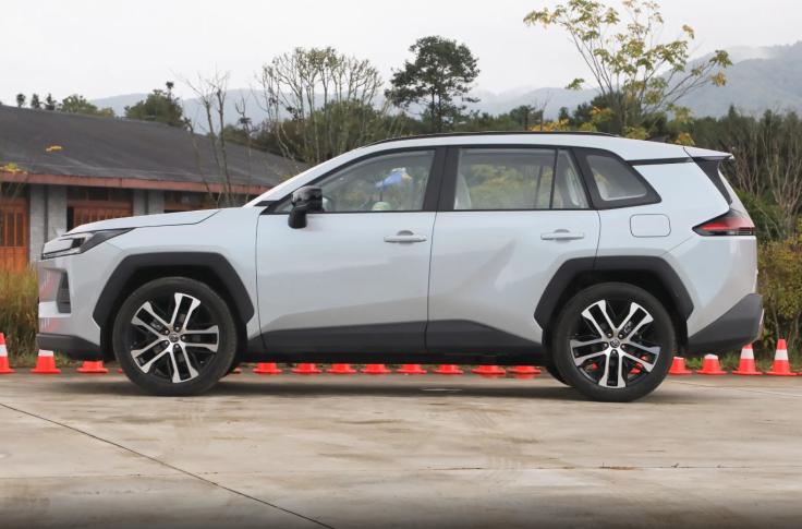 新车侧面的线条基本延续了老款丰田RAV4的设计风格,车门区域的Y字型腰线与拱形黑色轮眉呼应,丰富了外观的硬朗气质,侧裙采用黑化设计,但没有采用海外版本的镀铬饰条点缀,就视觉效果来看,主打务实可靠的设计理念。轮毂部分,新车升级20英寸五辐式花瓣轮圈,继续配备机械门把手,C柱后方采用“斜线”悬浮式车顶设计,强调设计的交互感。