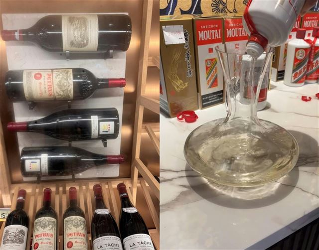 餐桌上的Domaine de la Romanée-Conti(罗曼尼·康帝)被誉为“红酒之王”,单瓶市价超20万元人民币,而茅台的加入更显中西合璧。