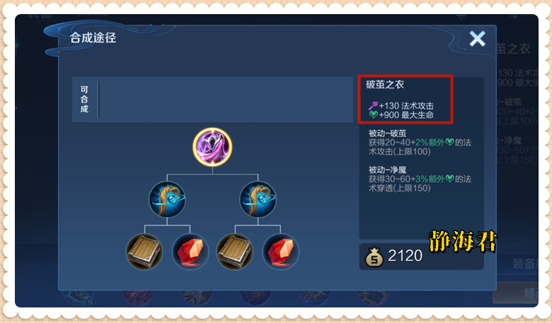 破茧之衣:法术攻击力从120→130,增加了10点。