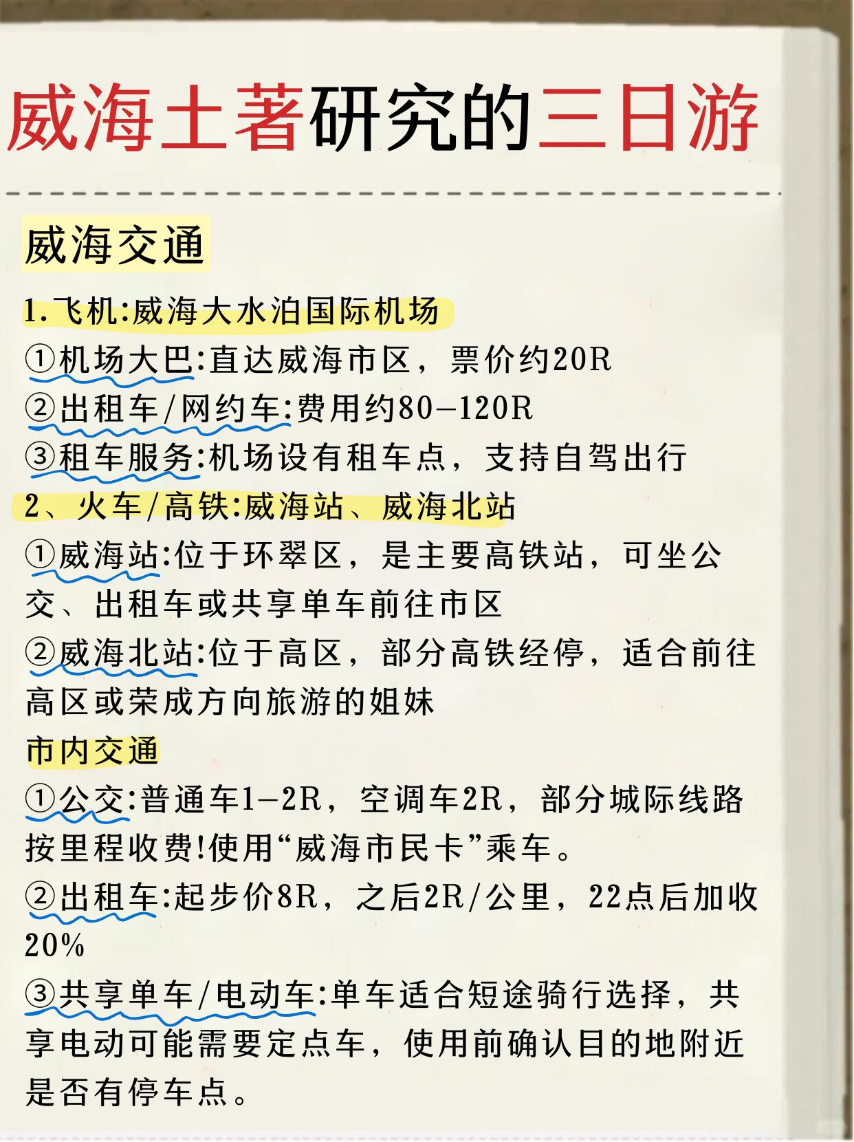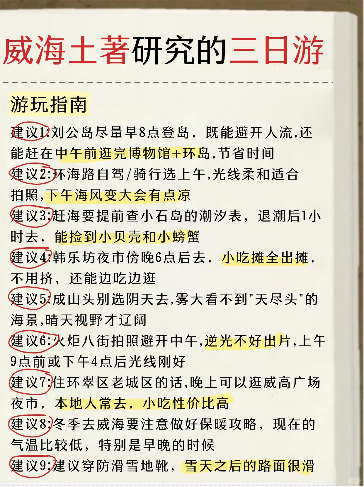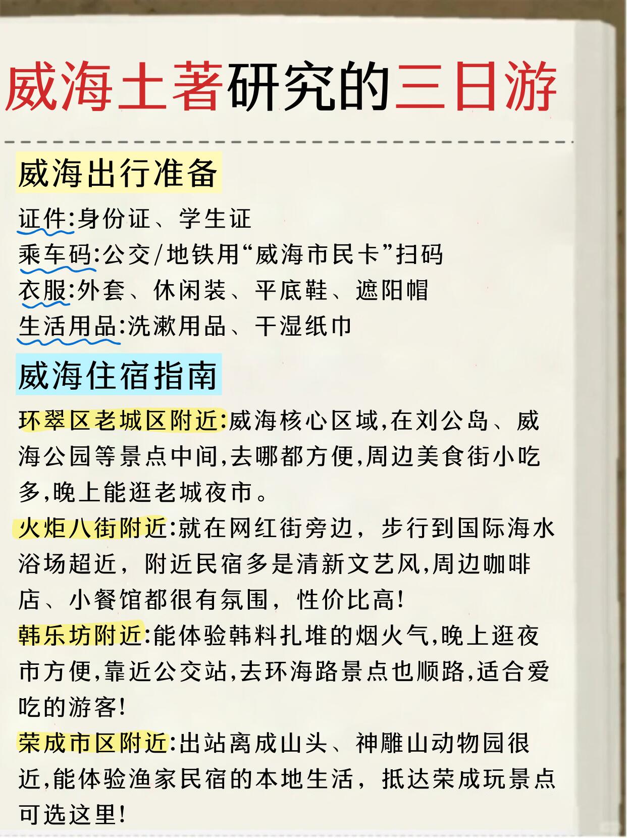 闺蜜做的威海三日游攻略太棒了🥰还是手写的,满满的诚意!我这次去威海就是直接跟着这套攻略去玩的,不得不说闺蜜真的有点东西!