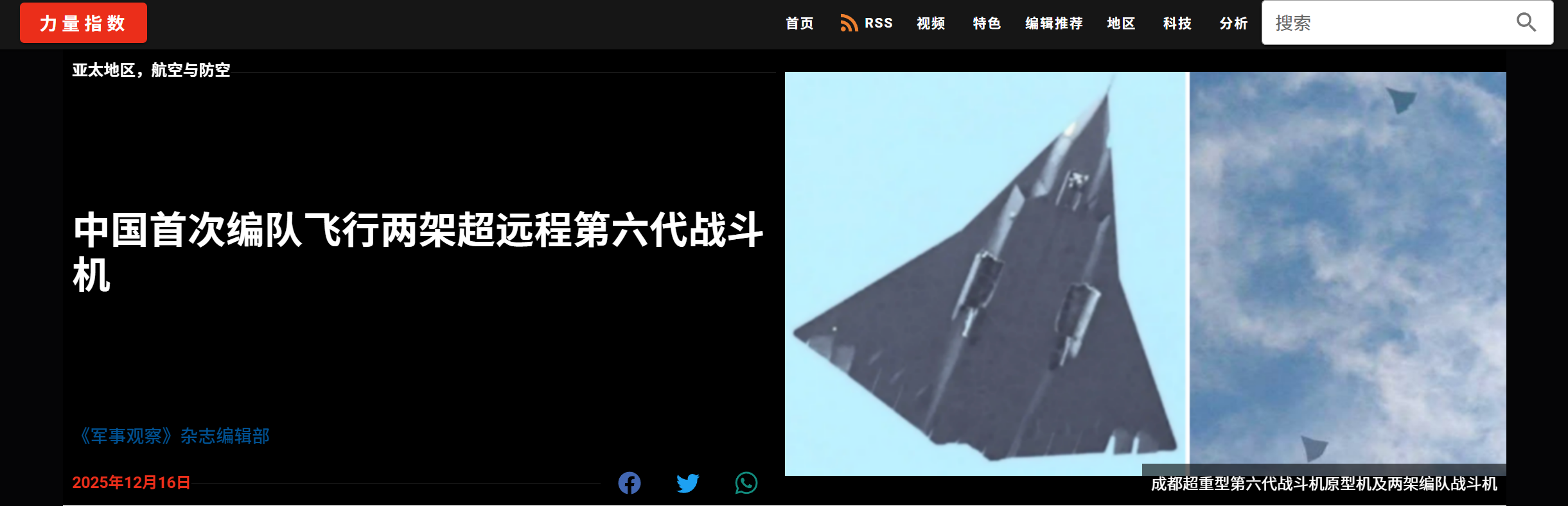 近日,中文网络上出现了“南六代”——歼36战斗机疑似进行编队飞行的图片,两架第六代战斗机翱翔蓝天,引发了国内军迷的热议,其影响力迅速出圈,军事观察杂志等国外军事网站对此也予以了跟踪报道。